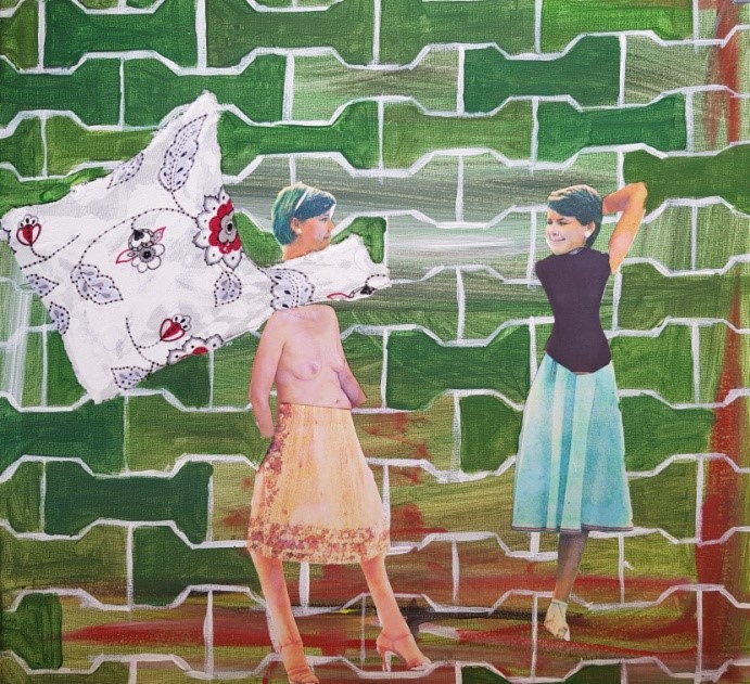A fost ales ca titlu "Ipostaze ale femeii" deoarece, subiectul "femeie", este unul dintre cele mai complexe și utilizate în nenumărate domenii, iar Carla Carina Sabău a ales să își pună amprenta personală, hotărând să utilizeze technica colajului din simplul fapt că oferă oportunitatea de a explora teme ca vârsta, valorile și, ȋn cazul artistei, conștiința socială. La început, atenția era centrată mai mult pe folosirea simbolică a imaginilor decât pe natura concretă a materialelor. Pentru realizarea colajului erau folosite materiale ready made din dorința de a introduce realul în artă.