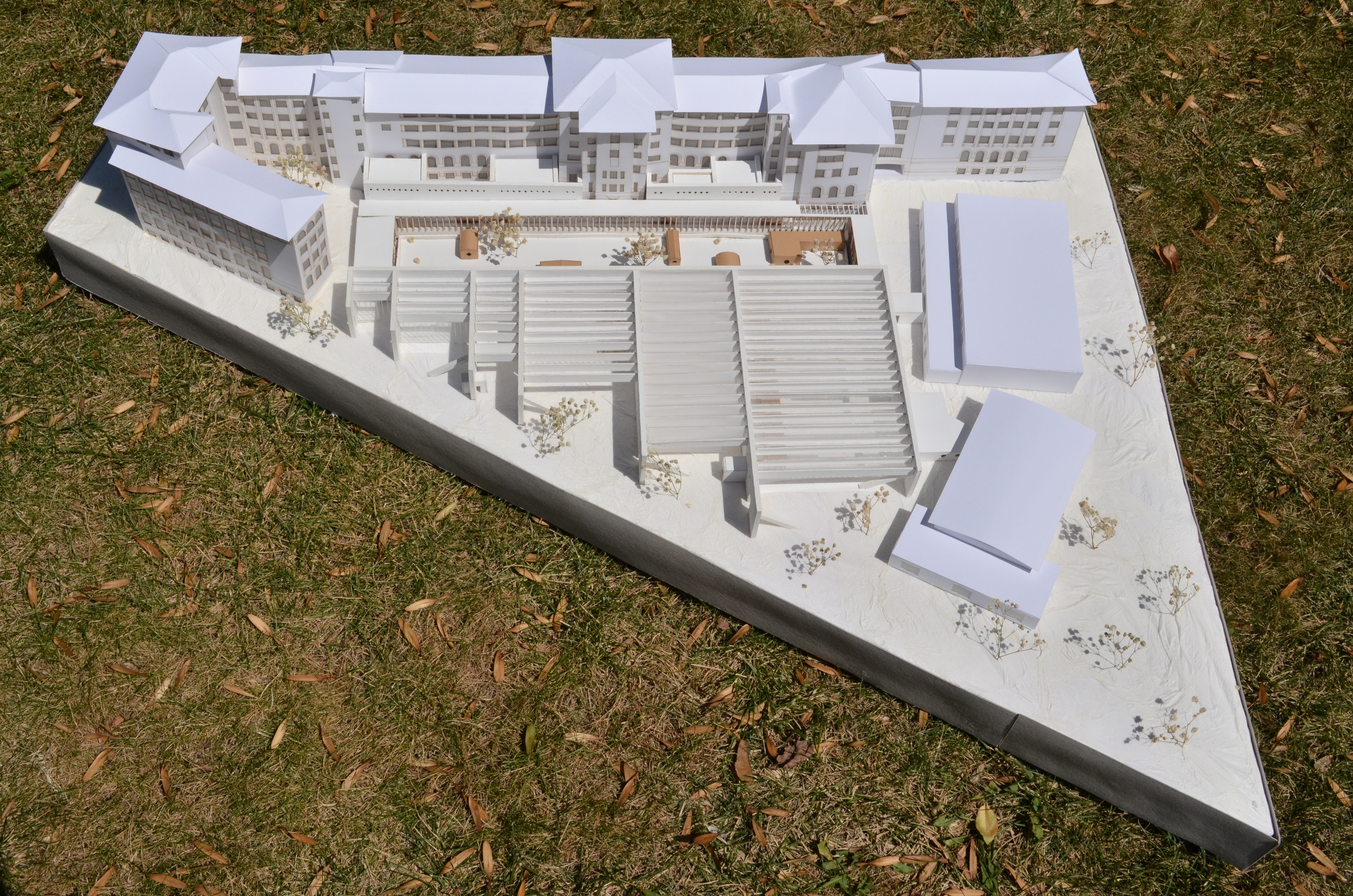 Locul prețios a fost gândit ca o grădină înconjurată de portice și conturată de clădirea existentă și partea nouă a școlii. Existentului i-au fost adosate câteva saloane pentru a completa și realiza o limită bine definită spre grădină. Partea de școală propusă răspunde către grădină cu o limită fermă, iar spre stradă există un grad mare de permeabilitate datorită diferitelor tipuri de locuri conturate între pereții care traversează terenul.