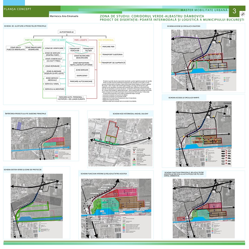 Proiectul Anei, Poartă intermodală și logistică a Municipiului București, își dorește să rezolve problemele de trafic și întărește conectivitatea europeană, națională, regională prin implementarea porții intermodale și logistice București. Elementul central este portul de marfă și călători București – Glina, care asigură legătura capitalei cu coridorul Rin-Dunăre. Portul, parcul logistic adiacent și activitățile conexe: comerț, servicii, locuire și birouri sunt conectate la centurile de cale ferată și rutieră, autostrada A2 și autostrada A0. Nodul intermodal de călători Port Glina cuprinde: transport public de suprafață și subteran, parcare subterană, stație bike-sharing și asigură un transfer facil între modurile de transport pentru preluarea fluxurilor generate de activitățile din zonă și cele de pe autostrada A2.