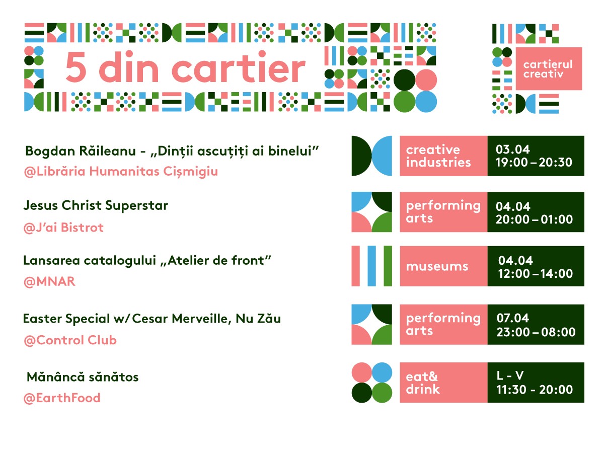 Muzică, lansări, pre-lansări, discuții și locuri ascunse. Acestea sunt recomandările noastre din rubrica „5 din cartier” din această săptămână.