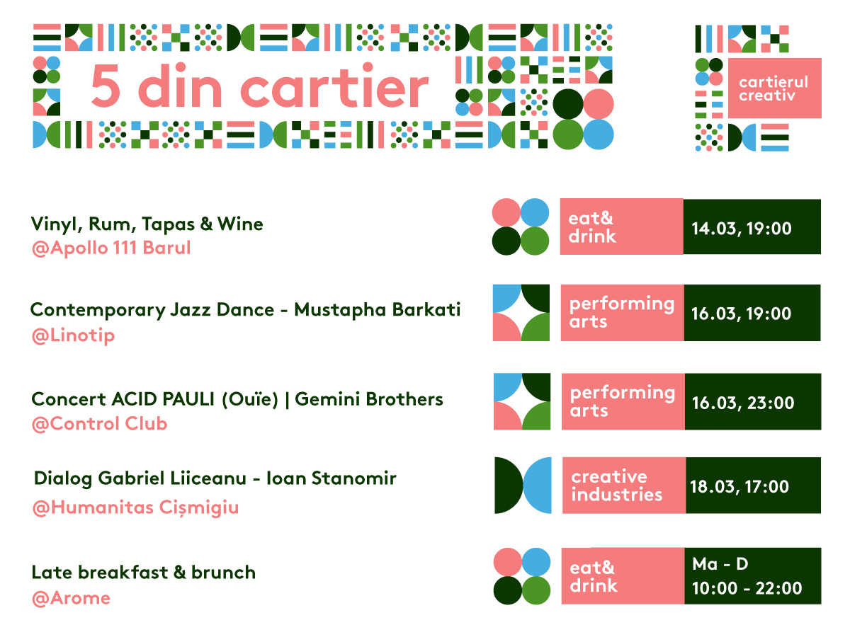 Am revenit cu „5 din cartier” sau lucrurile pe care nu vrem să le pierzi din vedere în perioada 12 – 18 martie 2018. Sperăm că deja v-ați obișnuit cu această rubrică de recomandări.