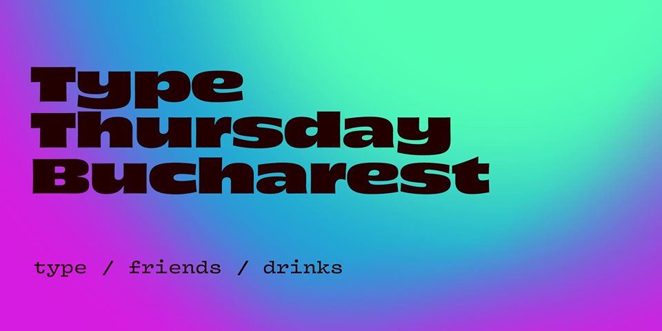 TypeThursday este o întâlnire lunară dedicată pasionaților de literă. Ne place să credem că suntem o super-familie tipografică și vom atrage iubitorii de litere din toate disciplinele grafice și cu diverse grade de expertiză. TypeThursday este un eveniment de socializare urmat de TypeCrit - discuție moderată pe proiecte ce au ca temă interes creația sau utilizarea de literă.