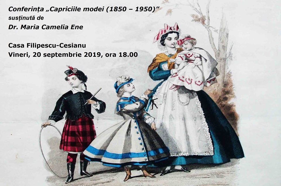 Muzeul Municipiului București vă invită să participați vineri, 20 septembrie 2019, ora 18.00, la conferința „Capriciile modei (1850 – 1950)”, susținută de Dr. Maria Camelia Ene. Evenimentul va avea loc la Casa Filipescu-Cesianu (Calea Victoriei 151).