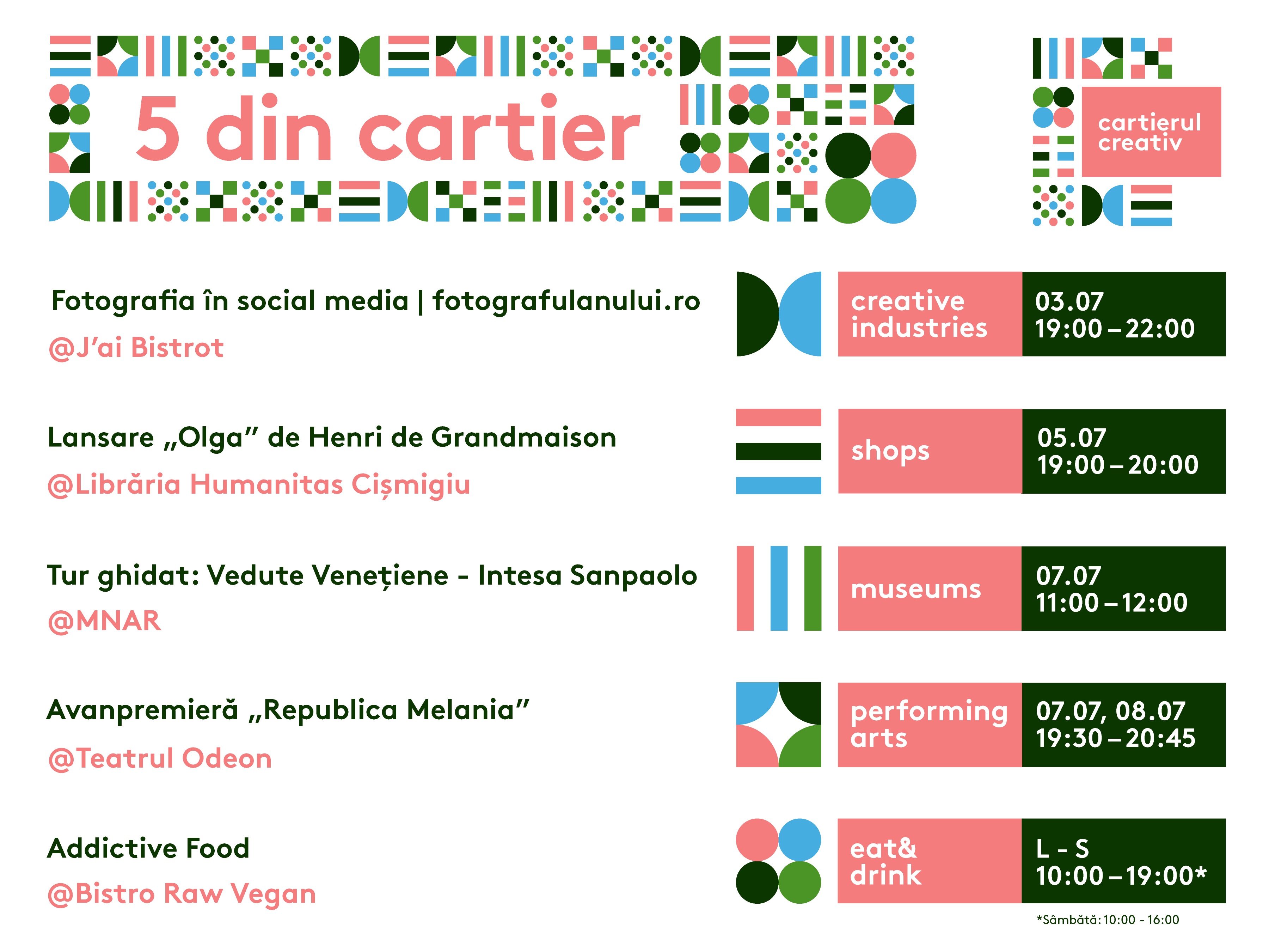 E timpul să vă punem la curent cu recomandările noastre pentru săptămâna 2-8 iulie. Iată rubrica „5 din cartier” sau ce nu trebuie să ratați în perioada următoare.