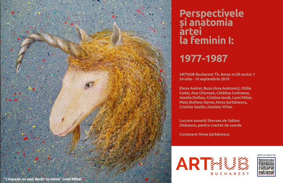 Miercuri, 24 iulie 2019, vă așteptăm la ARTHUB Bucharest la deschiderea oficială a expoziției ”Perspectivele și anatomia unei arte la feminin I: 1977-1987”. Expun artistele: Elena Andrei, Buzu (Ana Andronic), Otilia Cadar, Ana Chiorean, Cătălina Codreanu, Amalia Dulhan, Cristina Iacob, Lumi Mihai, Maia Ștefana Oprea, Nona Șerbănescu, Cristina Vasiliu, Daniela Vîrlan