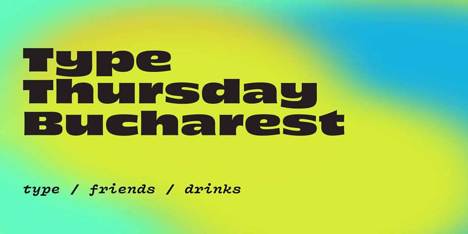 TypeThursday este o întâlnire lunară dedicată pasionaților de literă. Ne place să credem că suntem o super-familie tipografică și vom atrage iubitorii de litere din toate disciplinele grafice și cu diverse grade de expertiză. TypeThursday este un eveniment de socializare urmat de TypeCrit - discuție moderată pe proiecte ce au ca temă interes creația sau utilizarea de literă. Suntem bucuroși să îți răspundem dacă ne scrii un mail la bucharest@typethursday.org.