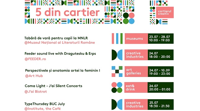 În Cartierul Creativ au loc zilnic concerte și activități pentru cei mici și cei mari. Iată cele 5 recomandări ale săptămânii: