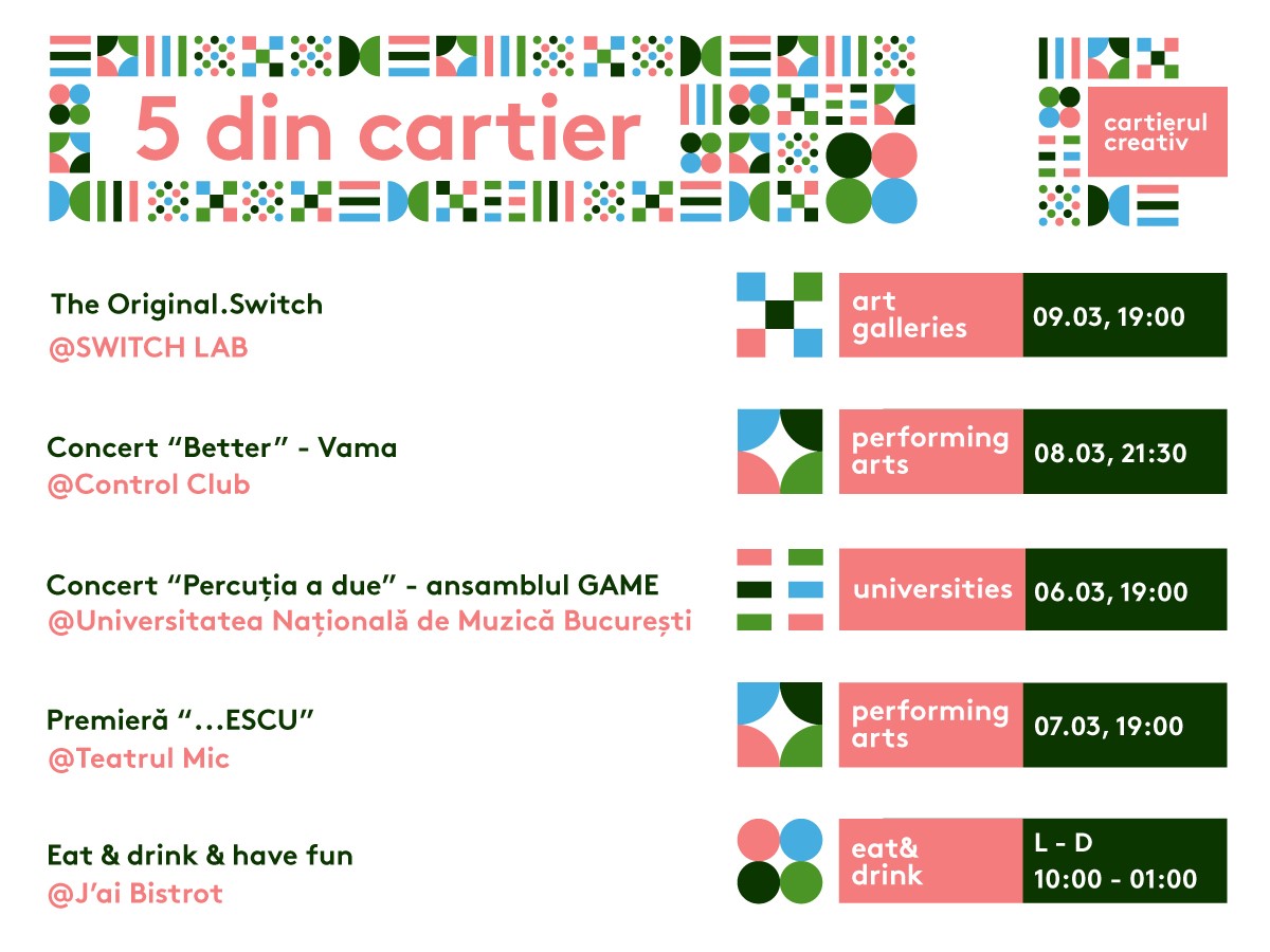 Am revenit cu rubrica noastră „5 din cartier” sau lucrurile pe care nu vrem să le pierzi din vedere săptămâna aceasta. Am făcut o obișnuință din această secțiune astfel încât să te ținem întotdeauna la curent cu evenimentele de neratat din Cartierul Creativ.