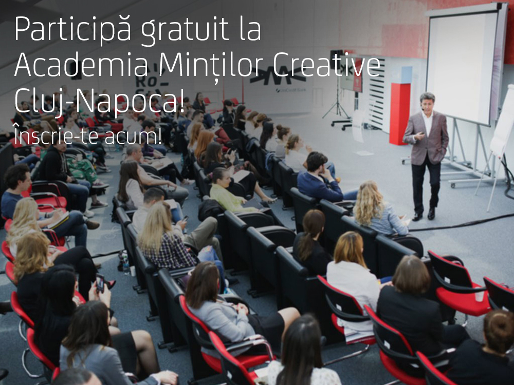Dacă ai răspuns da la întrebările de mai sus, vino în Academia Minților Creative Cluj-Napoca! Te așteptăm cu 3 zile de cursuri intensive destinate dezvoltării unei afaceri creative. Vei avea ocazia să lucrezi cu peste 12 mentori, specialiști UniCredit Bank, precum și profesioniști din alte domenii relevante mediului de afaceri, și alături de alți 30 de antreprenori cu minți creative pentru a-ți aduce afacerea la nivelul următor.