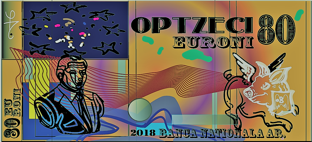Ideea principală a proiectului - vizualizarea raportului între valoarea corupției și puterea democrației, este realizată prin reprezentarea unei bancnote și a unei monede fictive (EUR+RON). ”Moneda corupției”, în valoare de 8 EURONI, are reprezentate pe cele două fețe simbolurile comunismului (secera și ciocanul), ale iluziilor realizabile „când va zbura porcul” și cele 12 stele specifice monedei Euro reduse la 8, aliniindu-se cu valoarea monedei. „Bancnota protestului” cu valoarea de 80 de EURONI, având ca punct de plecare imaginea bancnotei de 50 lei, cuprinde personalitatea colectivă, cifra 8 amintind subtil cunoscătorilor, de punctul 8 din Proclamația de la Timișoara (1990) prin care se cerea ca nici un fost membru al nomenclaturii Partidului Comunist Român sau al Securității să nu aibă dreptul de a lucra în funcții publice. Ca o continuare a demersului artistic, bancnotele și monedele imprimate conținute în bol sunt distribuite vizitatorilor, ca pliante.