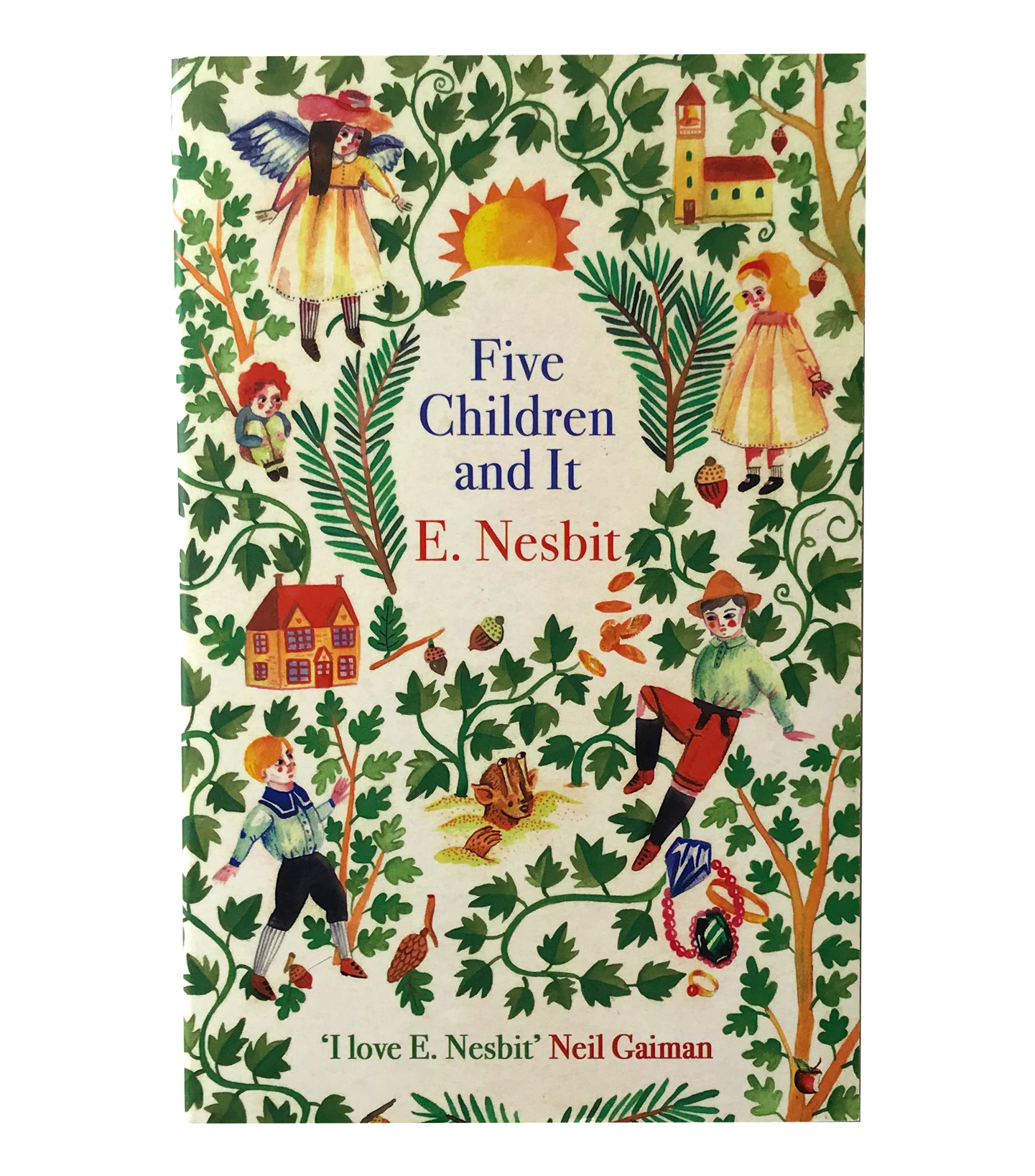 Never out of print since 1902. The book cover illustrations follow the fantastical adventures of five siblings in the Victorian times of E. Nesbit, the grandmother of children’s fantasy literature.