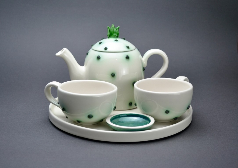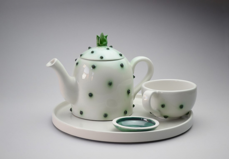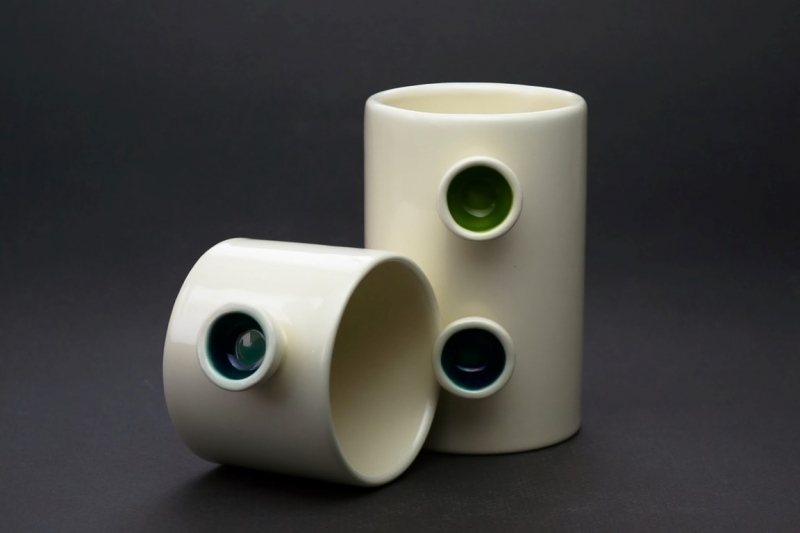Alexandra Constantinescu (born 1981) is an artist from Cluj-Napoca, who has been working for nearly seven years in her studio, developing unique design objects and limited series, made in porcelain or faience. Suitable for a sometimes slightly undetermined home use, the objects she creates are identifiable by the fact that she playfully goes around the classical ergonomic principle, introducing instead the notion of the decorative element that bears functionality.