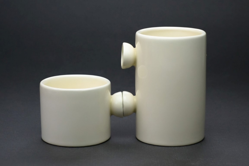The decorative tridimensional parts stand for classical handlers, providing minimal gripping points. The object can be manipulated by the creative engagement of these contact areas. In the same time, a revival of the tactile sense and of the conscious choice for living in the present moment is ensured. By introducing a minor difficulty in gripping a mug or lifting a lid, Alexandra Constantinescu helps the user to become aware of the shape and tactility of the object, the preciousness of the content, pinpointing a moment of escaping the mechanical mind-less repetition of daily common actions.