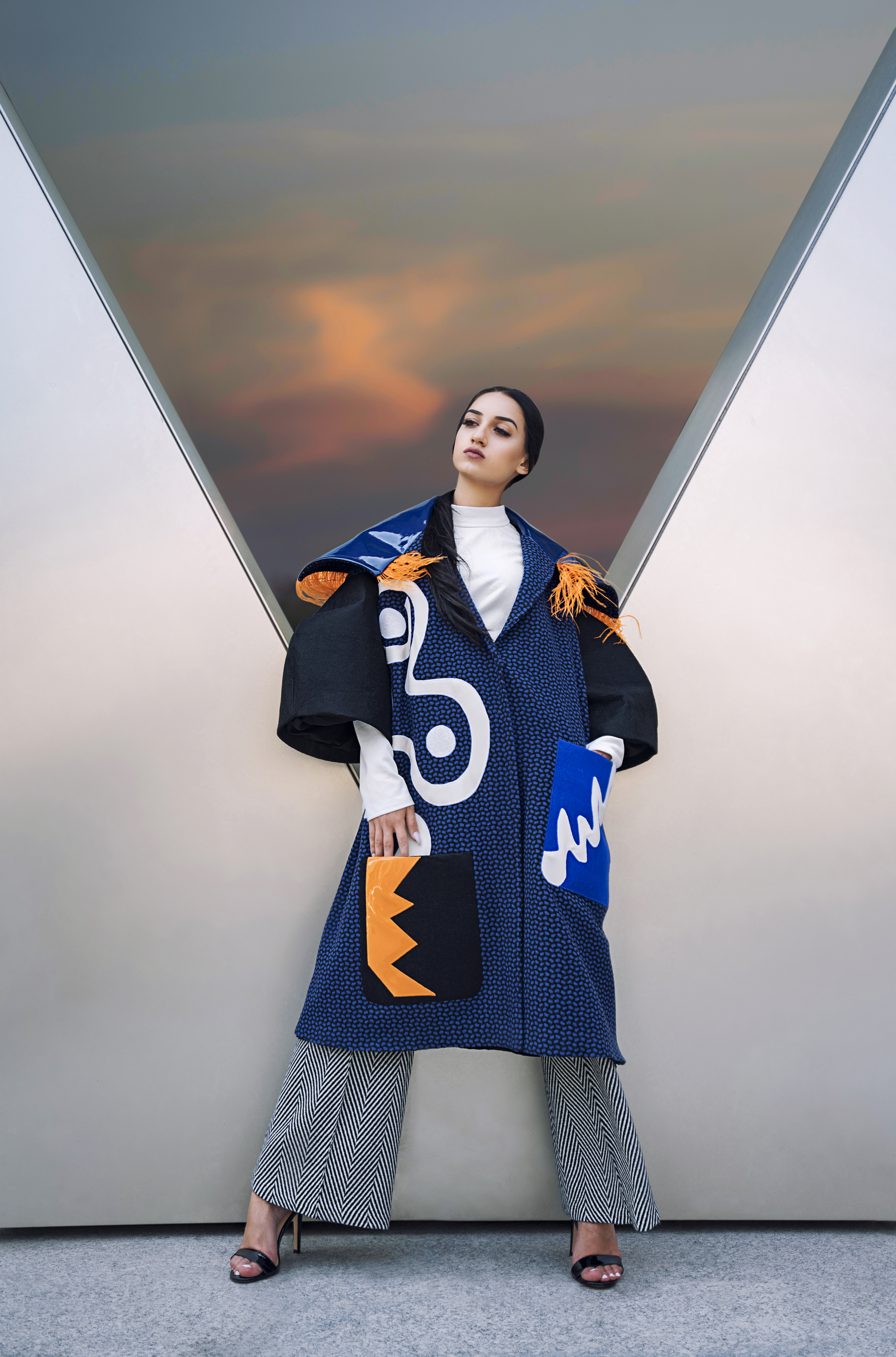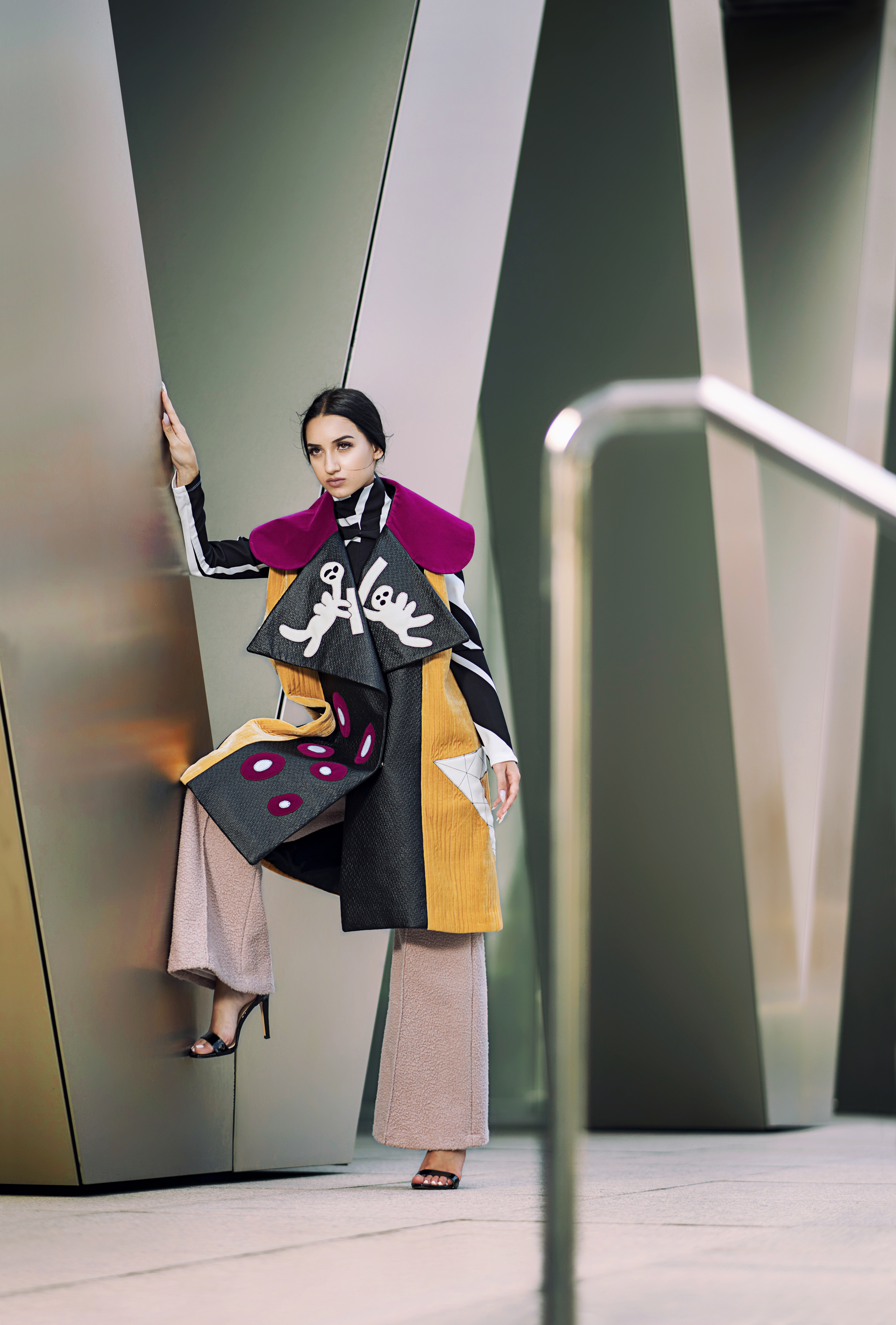 În ceea ce priveşte metoda de lucru, au fost utilizate tehnici de intarsiere, de aplicare şi de matlasare a materialelor. De asemenea, tiparele vestimentaţiei sunt preluate din tendinţele actuale, conţinând şi anumite forme ce fac trimitere la curentul cubist, spre exemplu, mânecile şi gulerele rotunjite, combinate cu reverele ascuţite.