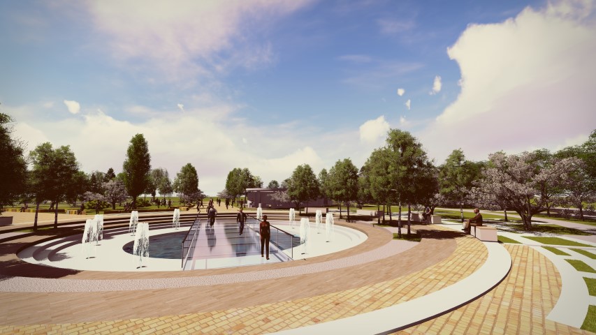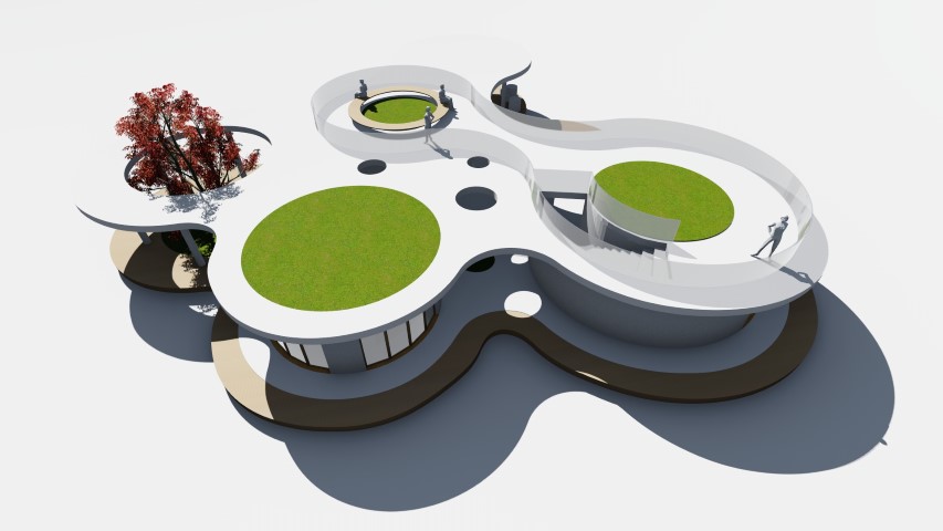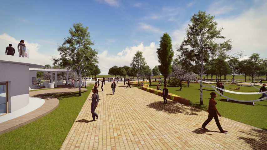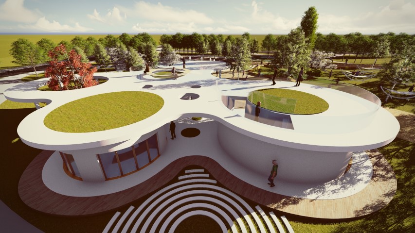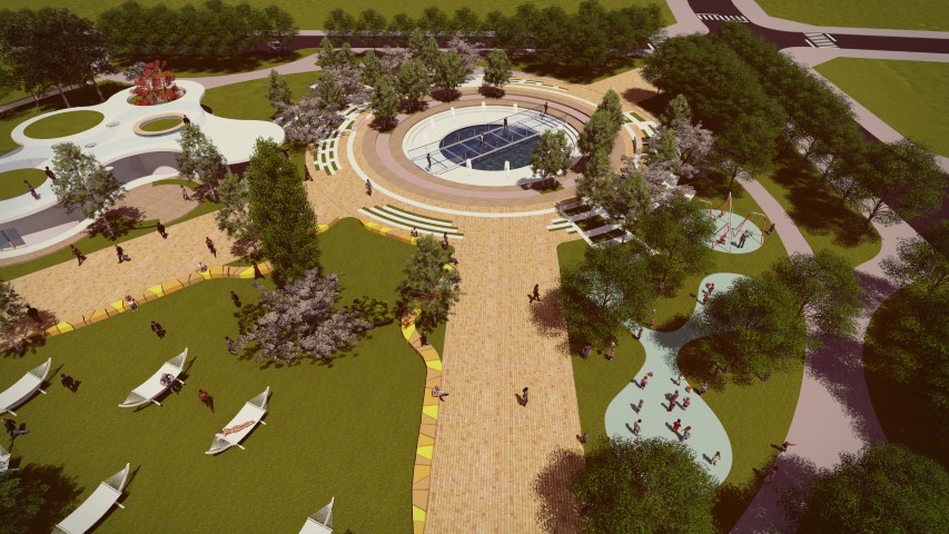 În vederea creșterii atractivității și creării legăturilor sociale, s-a propus un sistem de spații verzi, în imediata vecinătate a nucleelor funcționale și a malului de lac. Conceptul funcțional de amenajare a parcului sportiv are la bază ideea relaționării între atomi. Din punct de vedere al zonificării, se disting 3 zone importante: zona dinamică, zona comercială și o zonă culturală.