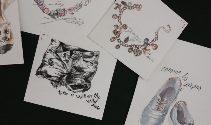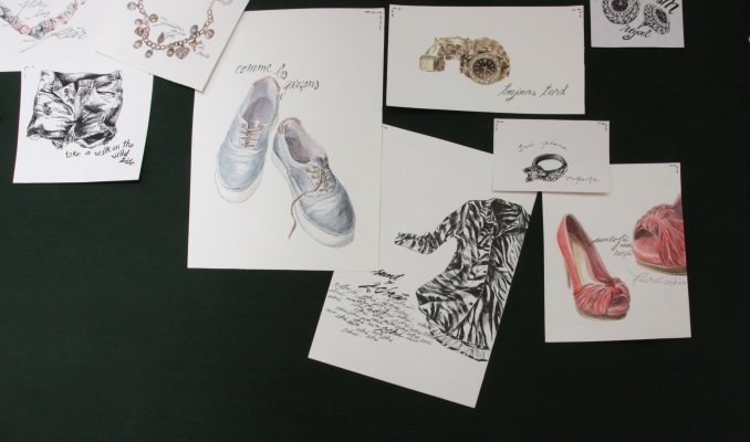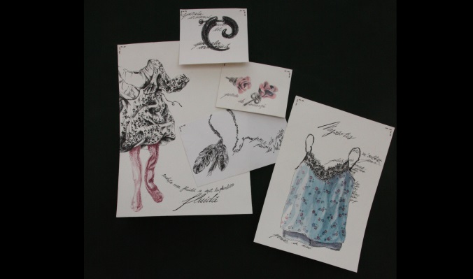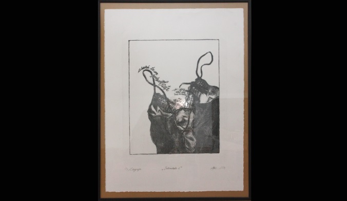 Seria de 3 litografii ilustrează universul lenjeriei intime, iar panoul textil cu ramă de tip gherghef, pe care sunt țesute desene ilustrative, conține notițe privind alegerile vestimentare făcute sub influența stărilor de spirit si a preferințelor.