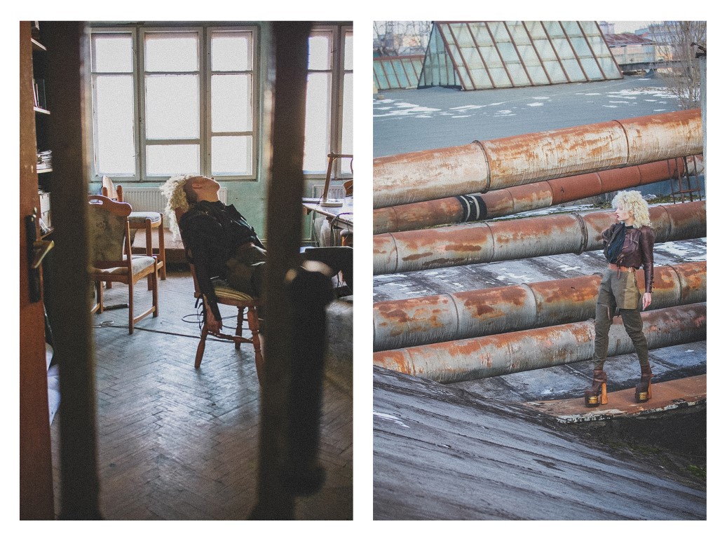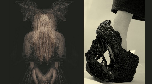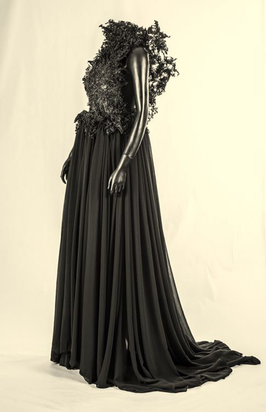 Black Subdivision Collection may be described as an example of inspirational amalgam which is based on the combination of different structures, and shapes with natural elements. Some of those forms represent an attempt of creating thru unconventional techniques, artificial textures of fabrics, inspired by the natural form.