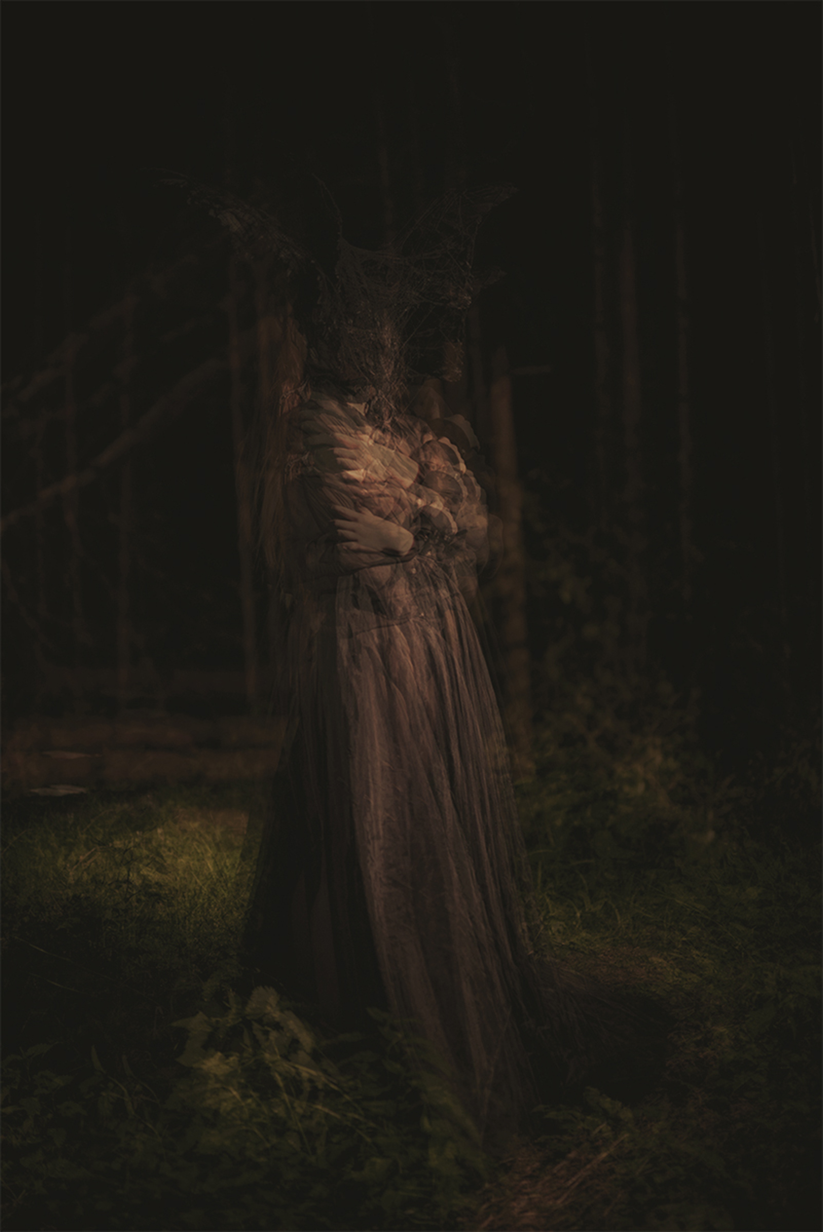 The works are created by burning processes, pasting, melting and repeated overlap of felt, natural or ecological fur, leather, melted organza and veil, dissolution of various adhesives, bitumen burning or animal bone structures, combined with silicone or resin.