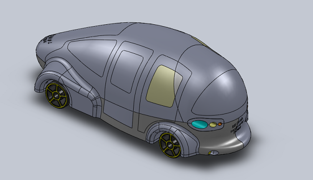 DESIGN DE CAROSERII, MODELARE 3D. Baza macheta brevetată a unui vizionar ing. Aurel PERSU, constructorul primului automobil cu profil aerodinamic avansat din lume cu roțile integrate în caroserie. Element original, eliminarea elementelor STANGA-DREAPTA. Concret un singur tip de FAR, un singur tip de STOP. Pe baza machetei, cu ajutorul programelor de proiectare asistată AutoCAD si SOLIDWORKS s-a realizat modelul 3D. Modelul realizat s-a exportat ca fișier *.stl și cu o imprimanta 3D s-a realizat modelul 3D, prezentat în cadrul expoziției. Unificarea prin design, obtinerea unui singur element STANGA-DREAPTA scad costurile cu 25~50%.