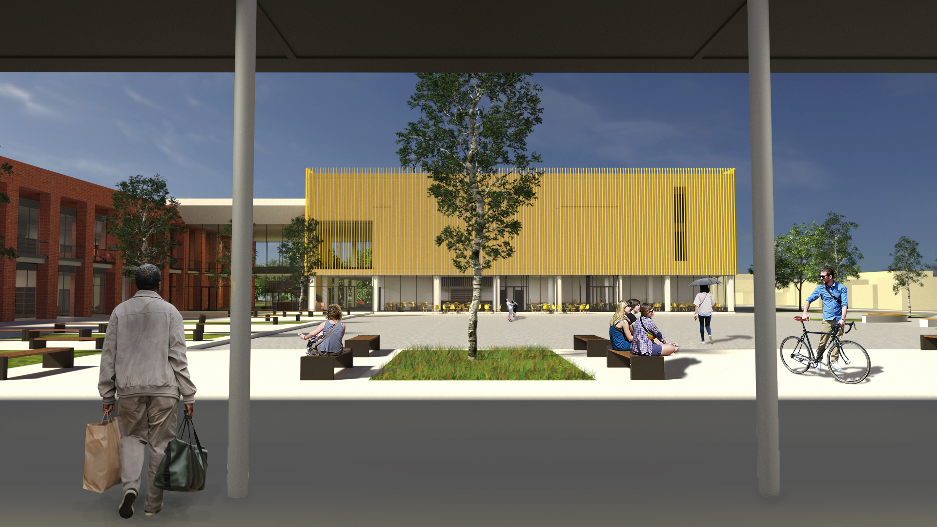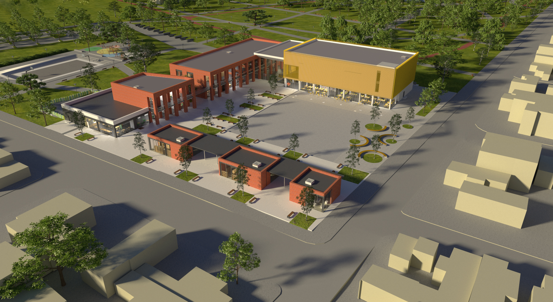 Centrul va fi organizat în 3 corpuri principale și 3 secundare, fiecare corp oferind funcțiuni specifice pentru publicul larg, sau pentru locatarii și copiii zonei. Corpurile vor funcționa de sine stătătoare, sau împreună în cadrul complexului.