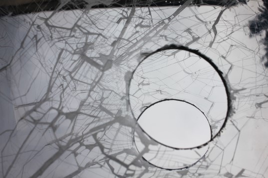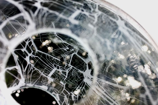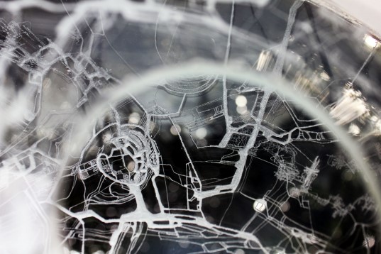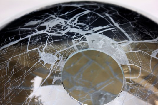 Tehnica: Sticlă fuzionată, gravată şi tăiată.