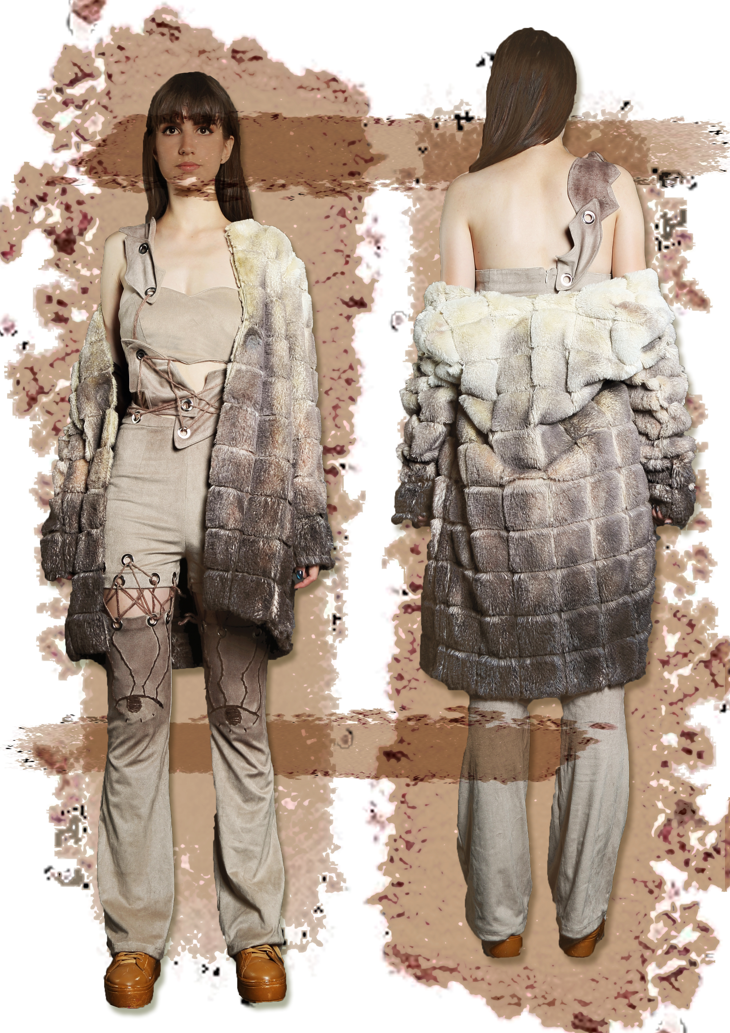 Acest proiect prezintă machiajul sub o altă formă decât cea cunoscută de om, cea vizibilă în magazine, reviste și internet. Puțini oameni cunosc ce se ascunde, de fapt, în spatele unor simple palete de machiaj, sau cum influențează acestea gândirea și perspectiva femeilor. Colecția Dress-up with make-up are ca scop evidențierea unor probleme ce au apărut în ultimii ani, legate de percepția oamenilor asupra femeilor machiate/nemachiate. Această înfățișare artificială promovată excesiv prin intermediul mass-mediei, influencerilor sau reclamelor, are ca rezultat complexarea femeilor, care se văd nevoite să adopte niște idealuri impuse. Astfel, tema aleasă are ca obiectiv principal punerea într-o lumină bună și în general neadoptată de masele de oameni, a naturaleții femeilor și totodată încurajează acest lucru, cultivând încrederea de sine. Colecția în sine conține 6 ținute monocrome diferite, care împreună formează o metaforă simbolizând clasica paletă de machiaj.
