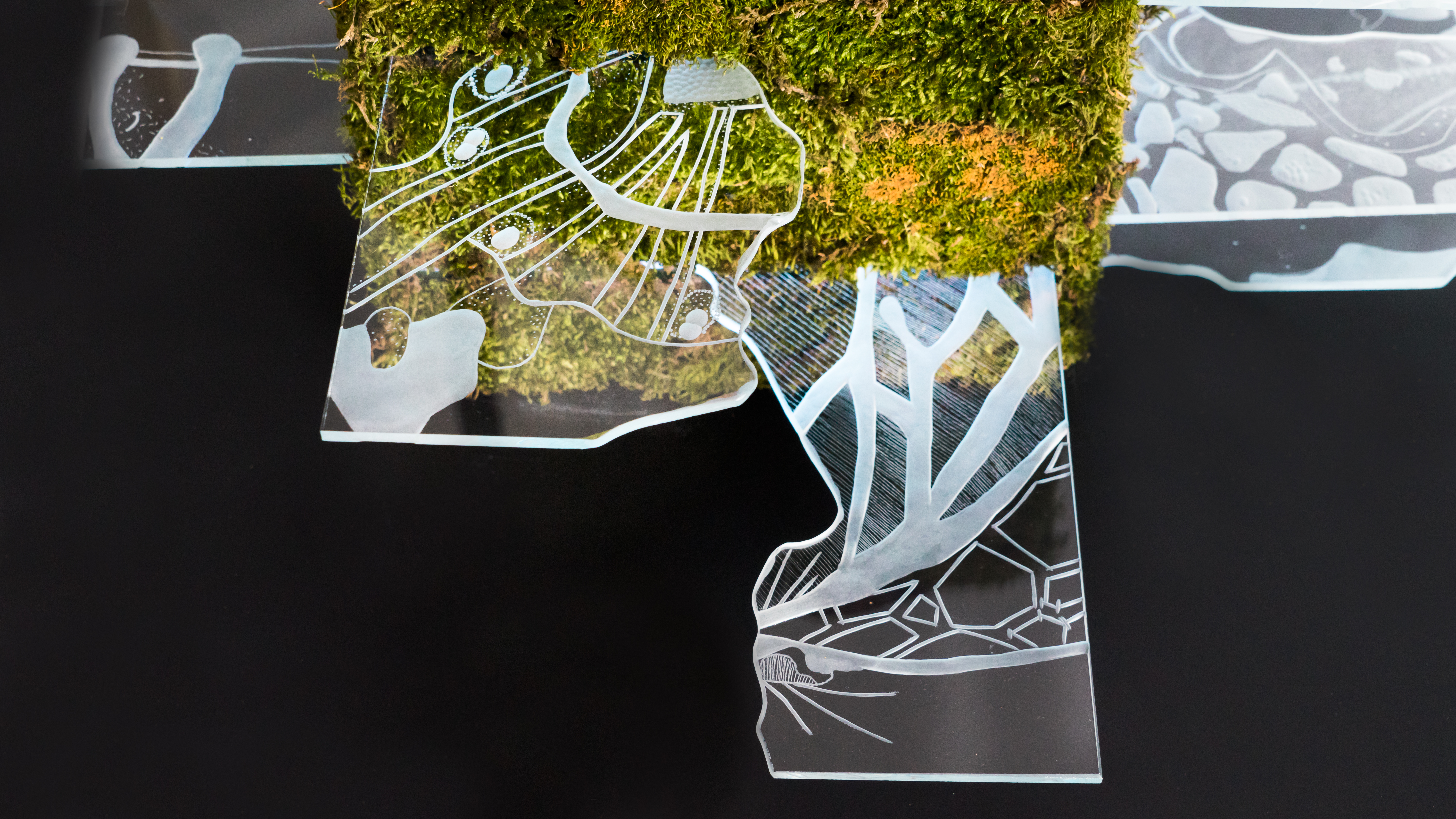 Toate semnele și simbolurile ce se regăsesc în multitudinea de forme microscopice alcătuiesc un cod al condiției și existenței organice. Structurile microscopice găsite în elemente din mediul înconjurător, au fost studiate în scopul înțelegerii diversității de forme ce le compun.Ceea ce urmărește artistul să transmită și să evidențieze prin acest studiu este conexiunea și legăturile între specii, micul univers ce stă la baza existenței ce poate fi deslușit prin semne, simboluri și forme. Lucrarea este realizată prin tehnica sticlei gravate, gravura fiind pusă în evidență cu ajutorul luminii, atat naturale cât și artificiale.