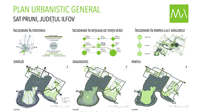 Lucrare are ca obiect satul Pruni, parte componentă a orașului Măgurele, județul Ilfov, prin prezentarea succintă a situației actuale și mai apoi a intervențiilor propuse, pornind de la nivel general, ajungând în final la nivel de detaliu. Proiectul se axează în principal pe integrarea satului Pruni într-un sistem complex de agrement din sudul capitalei, ce pornește din zona Lacului Mihăilești și se termină cu Parcul Natural Comana, mizând pe potențialul turistic și peisagistic al elementelor naturale majore de care localitatea beneficiază, anume Pădurea Cornetu și Râul Argeș, cel din urmă fiind totodată și principalul element de legătură din sistem. Astfel, se urmărește o dezvoltare economică în domeniul agriculturii și al turismului, împreună cu eficientizarea mobilității în teritoriu.