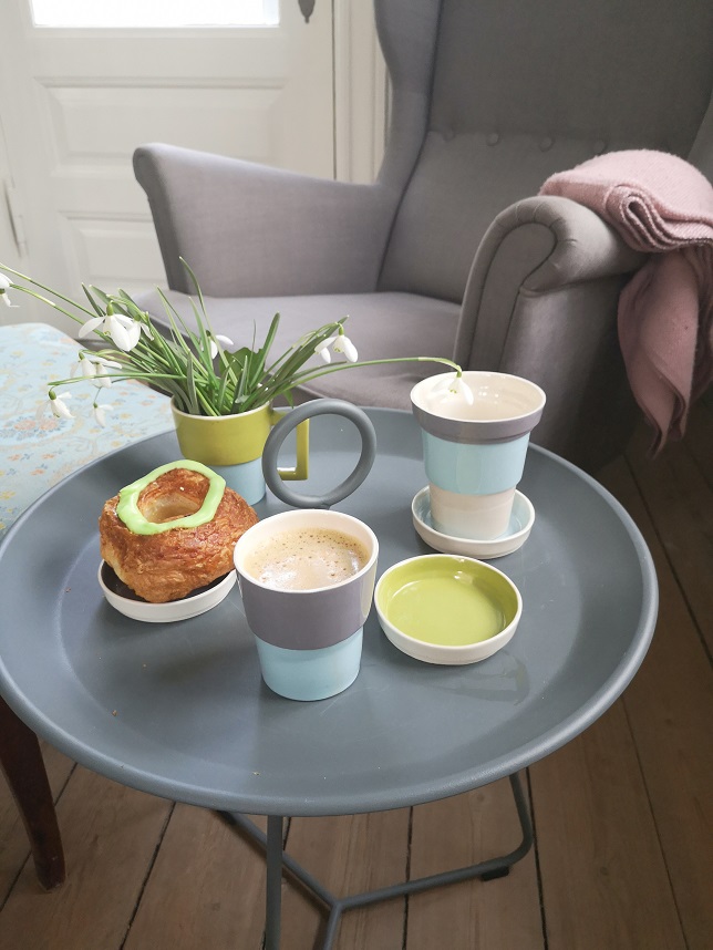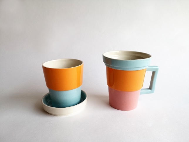 The collection of "telescopic" mugs, cups and saucers was made during an art residency in Denmark.