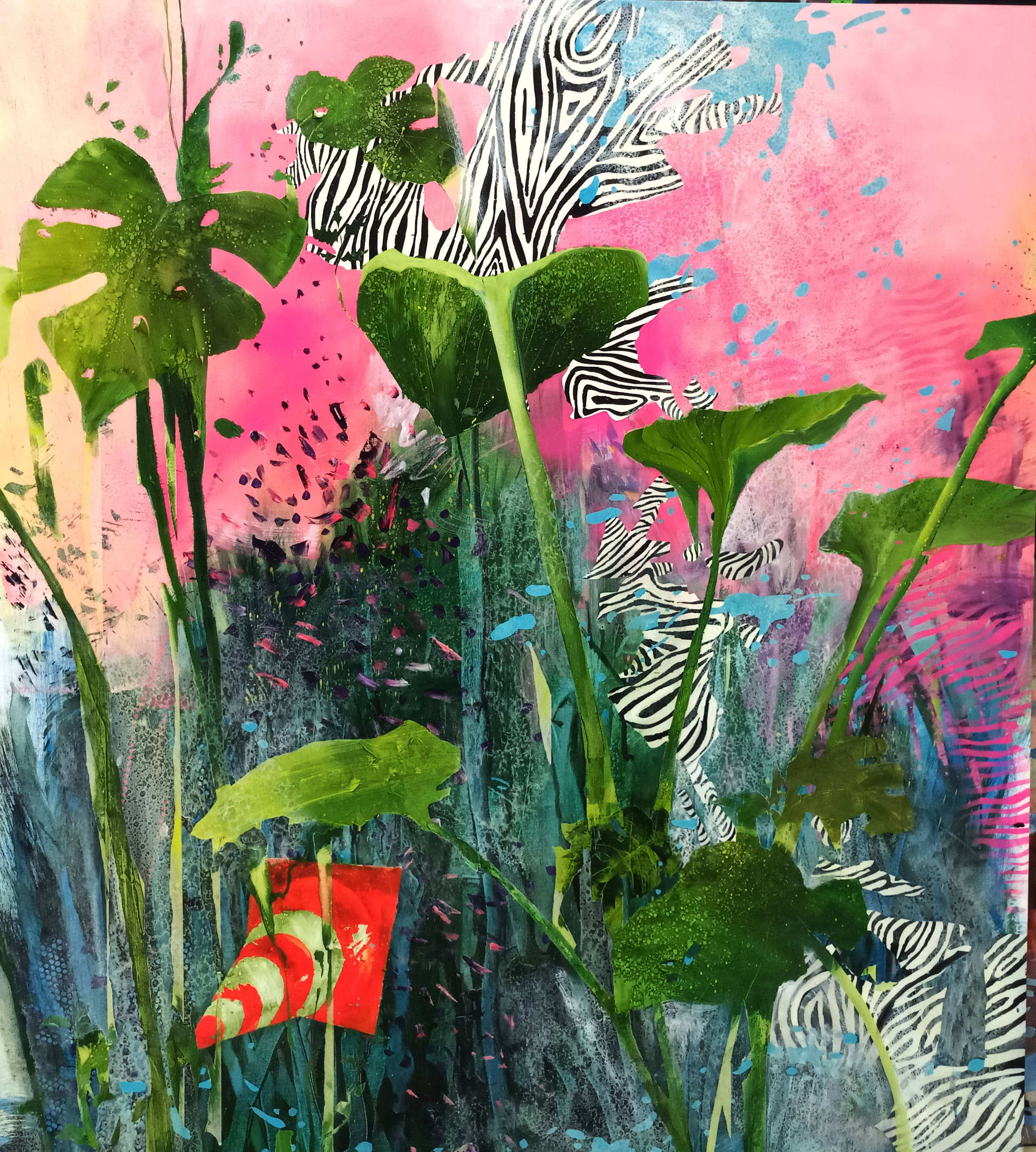 Spaţiul pictural construit de ea, folosind o tehnică similară colajului, depăşeşte realitatea palpabilă şi se îndreaptă spre o realitate simbolică, absurdă. Începe de la ideea de hazard, pentru ca mai apoi să ajungă la o abordare metodică — un puzzle construit riguros din fragmente de realitate şi imaginaţie. Prin această abordare lectura imaginii este fracturată şi se oferă noi piste de interpretare, forţând privitorul să îşi folosească propriul bagaj de cunoştinte şi imaginaţia.