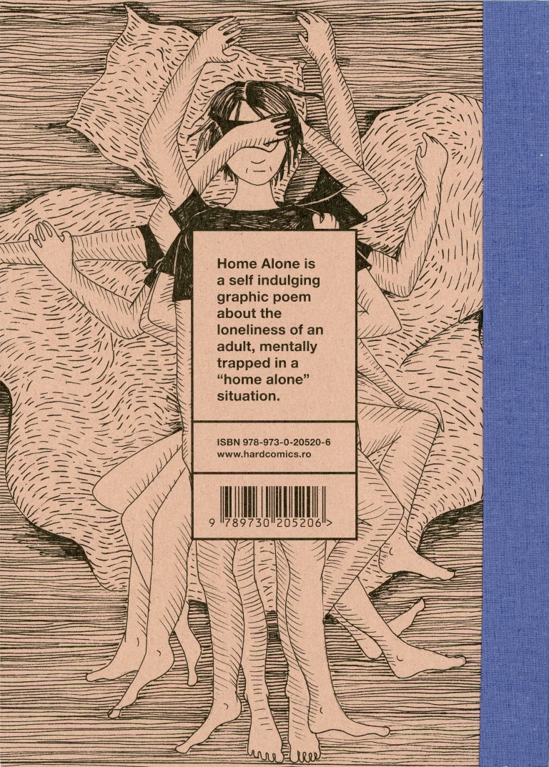 Home Alone is a graphic poem in over 100 pages about the loneliness about loneliness when you are an adult, about loneliness as a state of being. When "home alone" is not an hour and a half comedy anymore and becomes a non-stop reality, lived between 4 walls, everything - people, things, facts - is happening at a different pace.