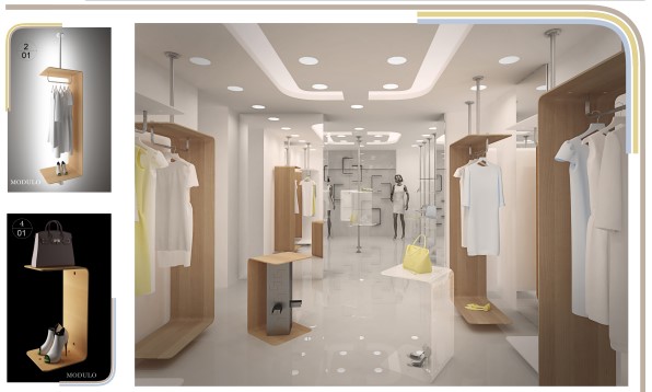 Modulo este un proiect focalizat, în mod special, pe relaţia dintre geometrie, arhitectură de interior şi mobilier. Proiectul are ca obiectiv amenajarea unui spaţiu comercial pentru un tânăr designer român, Alexandra Calafeteanu şi găsirea unor soluţii pentru mobilierul comercial şi al sistemelor de expunere.