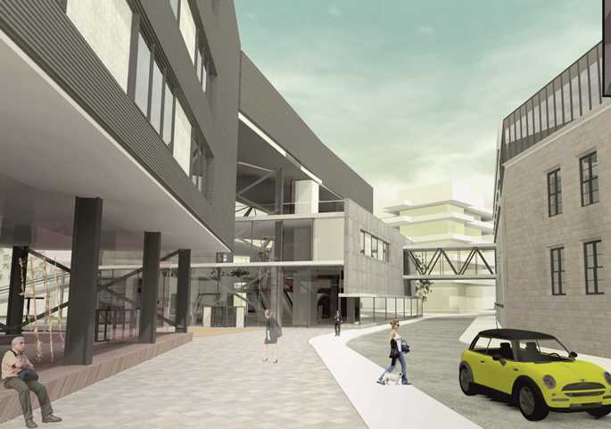 Noua clădire, care se dorește a fi realizată pe terenurile ramase libere în urma demolării atelierelor, este relaționată cu clădirea principală a fostei fabrici de încălțăminte „Pionierul”, care are valoare arhitecturală și urbanistică deosebită, printr-o pasarelă transparentă peste Strada Verzișori, reinterpretând legătura care exista între cele două terenuri. Soluția prevede ca în clădirea de patrimoniu a fabricii să fie redată funcția de producție de mici dimensiuni, pentru obiecte vestimentare și de încălțăminte unicat, transformând producția, care în trecut era de scară mare, într-una de scară restrânsă, dar de calitate superioară. Celelalte clădiri pot fi reconvertite pentru a reîntregi și a susține concret această micro-industrie, în centre de recalificare în domeniul croitoriei și al producției de încălțăminte, cu ateliere de practică și săli de curs.