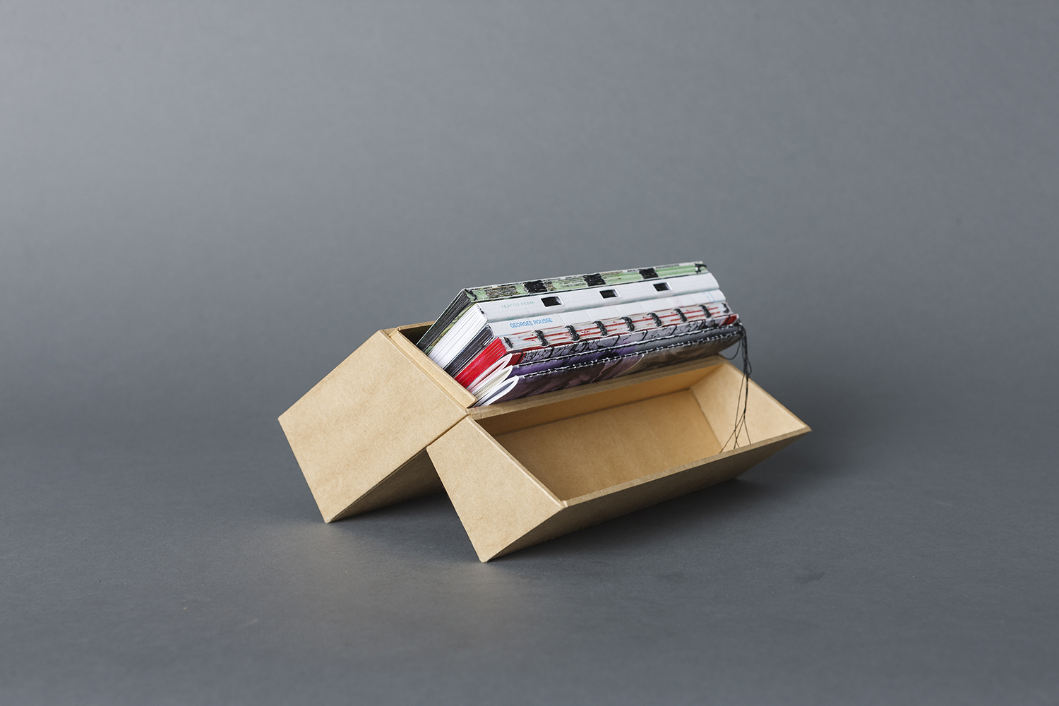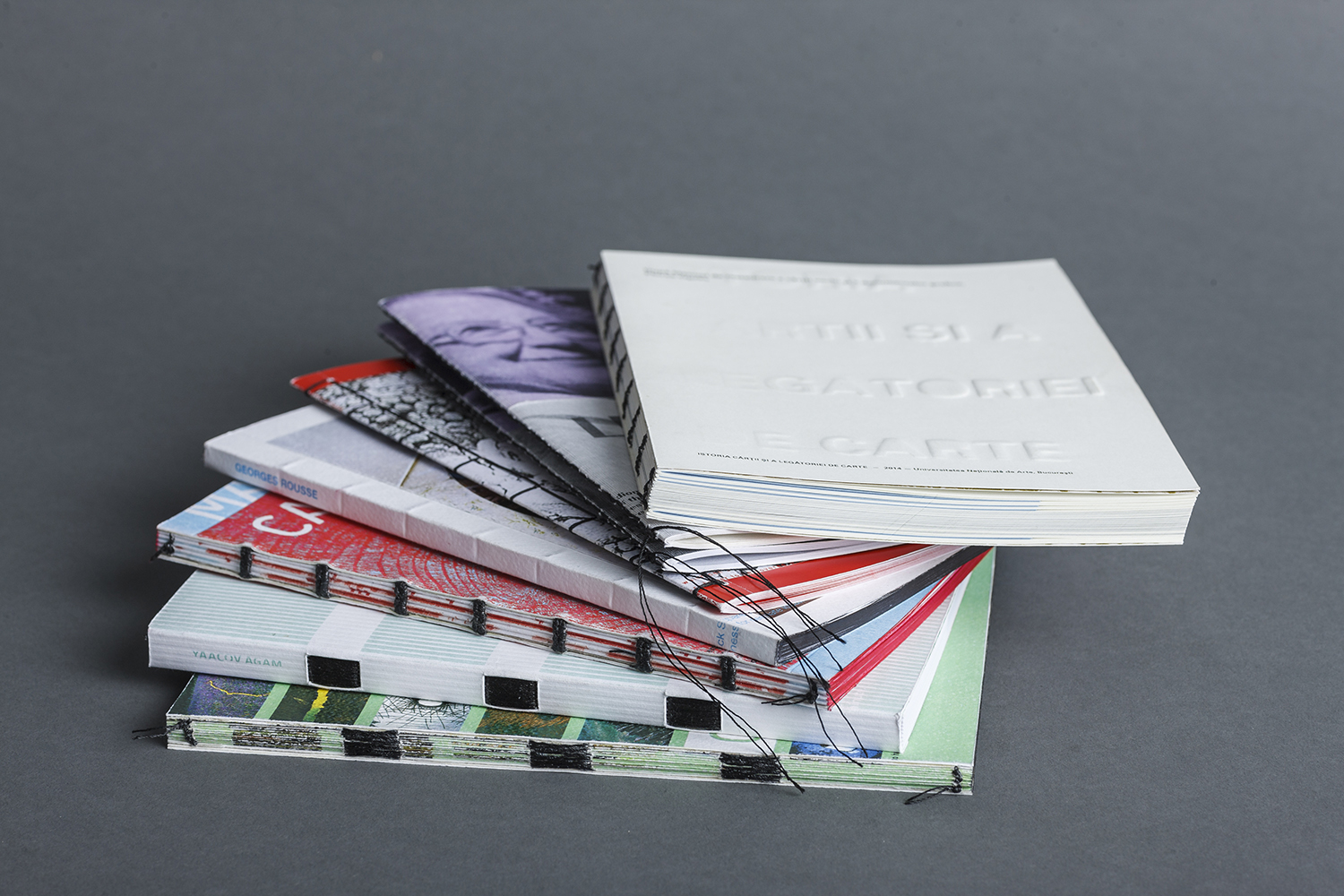 The history of books and bookbinding is the main book from the Architecture of books, containing six more artist books that show the perfect relation between type, lay-out, architecture, exterior - interior etc. Its content is based on the history of bookbinding, the morphology of books, bookbind-ing steps, techniques and tools. All seven books are created on the same grid and have the same size. The binding and typography is different, being related to the type of subject and each artist vision of the world.