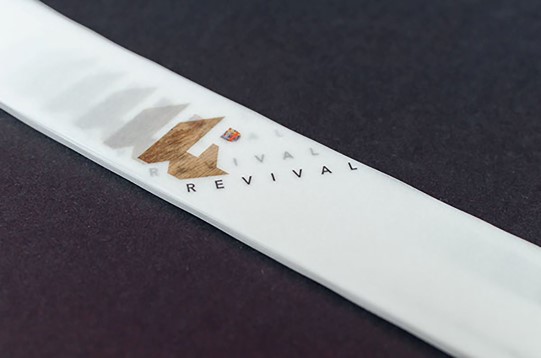 Visual identity for Dorina Horătău (textile designer) personal exhibition, REVIVAL @ Casa Ion Mincu, Bucharest, 2014. After long talks with the artist, it was decided to use the letter R as the exhibition central element, an R that became ornamental, a mix between tradition and contemporanity. Based on the new identity they developed a series of folders describing the event, next to the invitation, outdoor banner, online and print poster and the whole event packaging.