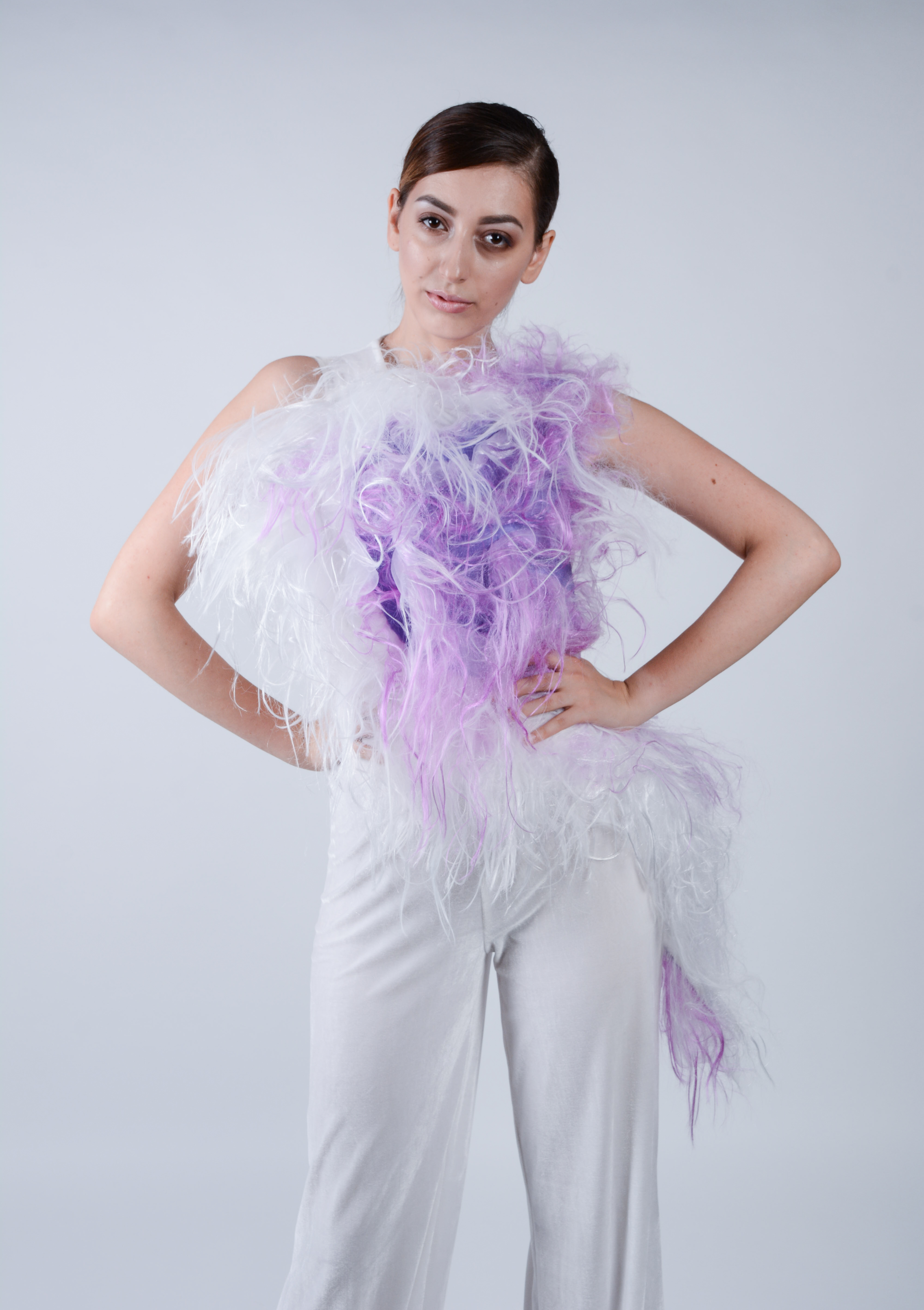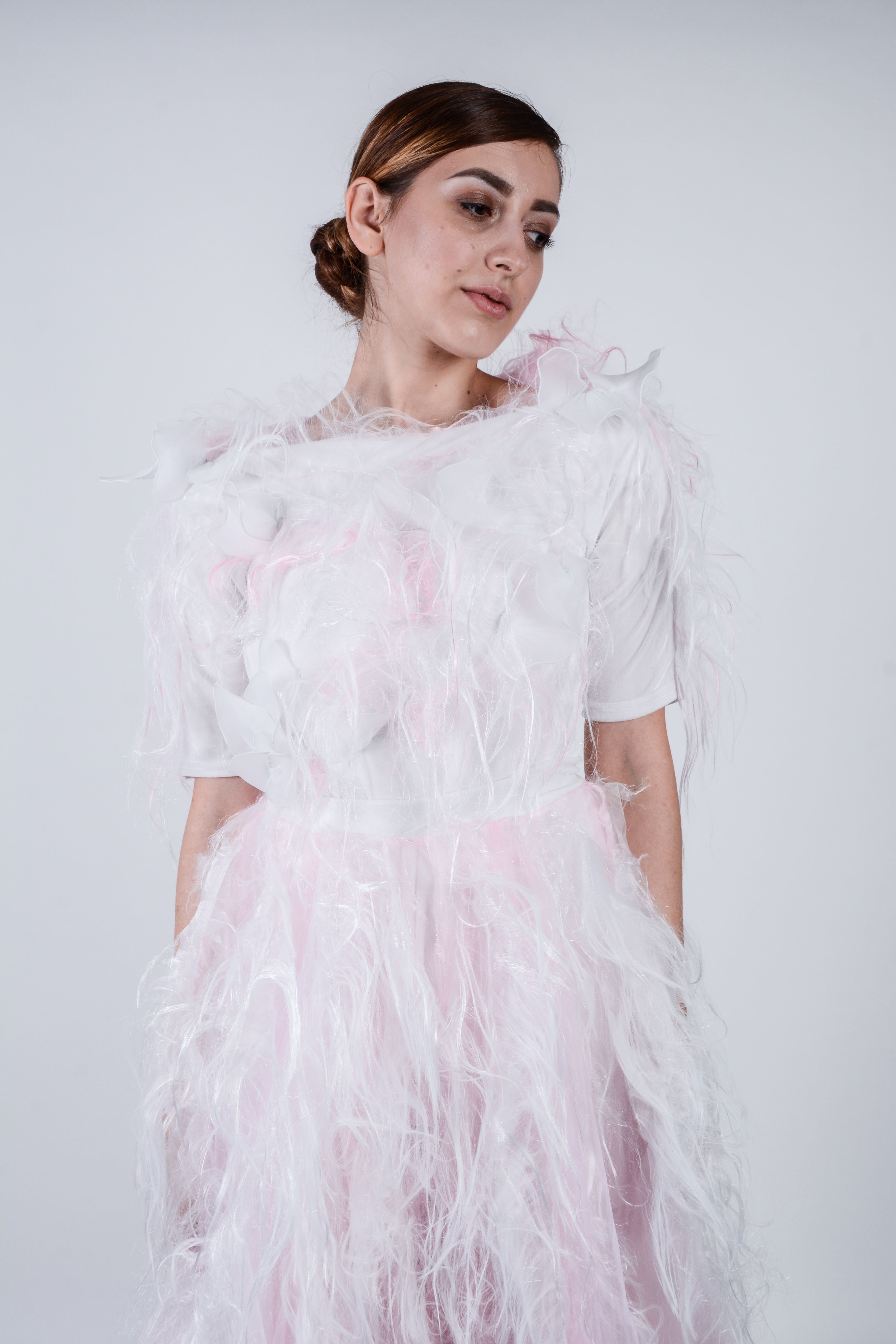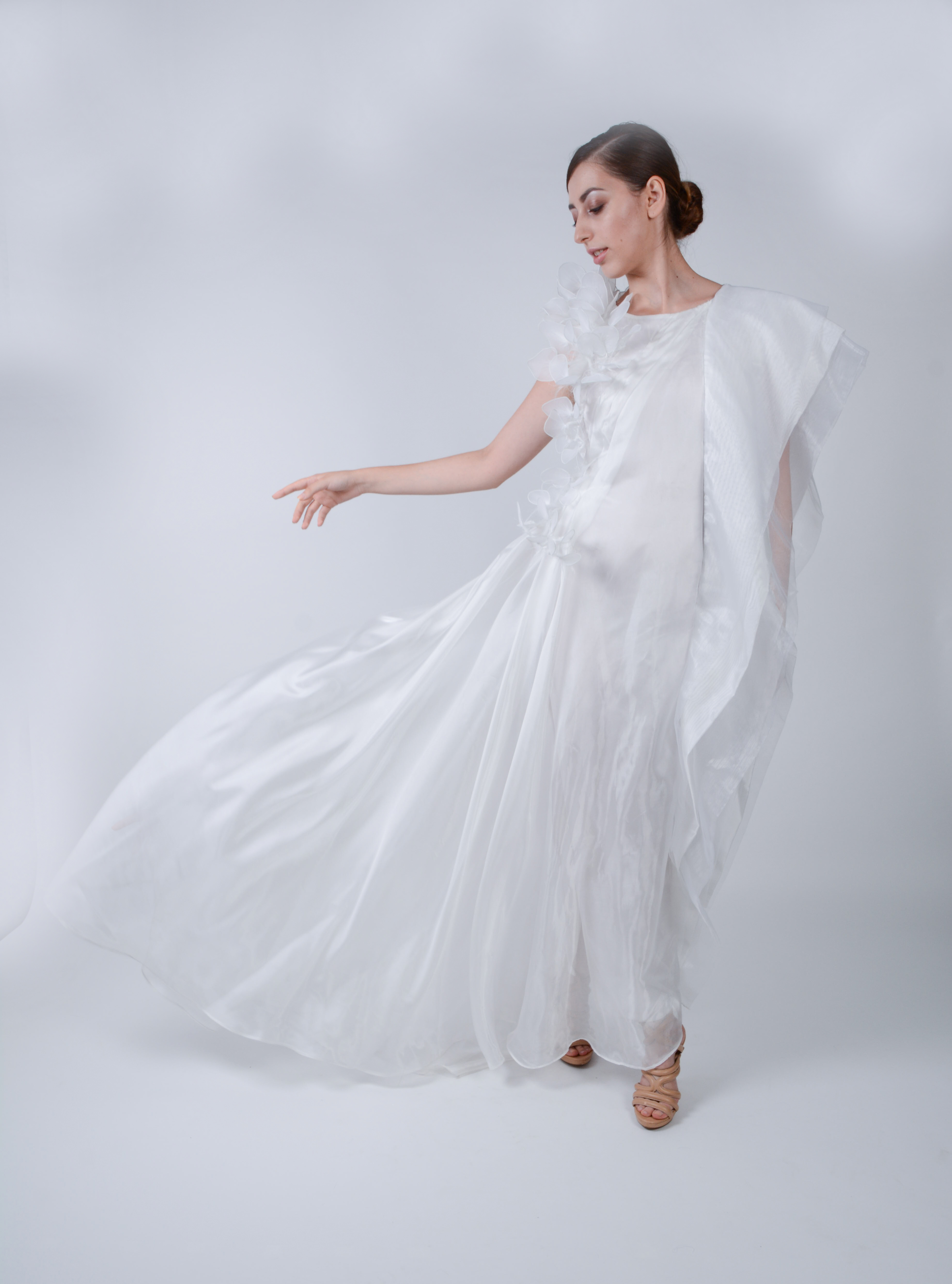 Colecția Sinidisis are la bază ideea de suflet, care călătorește între cele două lumi, acesta fiind reprezentat în vestimentație prin materialele delicate și subțiri, a căror cromatică semnifică puritatea, lumina, sfințenia, lumea de dincolo, echilibrul și optimismul. Colecția expune sufletul care se plimbă între cele două lumi, fiind reprezentat prin mici detalii, cum ar fi ideea de aripi creată prin destrămarea organzei, transparențele create din organza ,care dau impresia de plutire, catifeaua albă ce exprimă puritatea și sensibilitatea sufletului, structura de sârmă prelucrată în petale albe care sunt în echilibru cu drapajul de voal și organza care creează impresia de plutire. Un alt detaliu reprezentativ este locul de unde pornește organza destrămată,respectiv în zona inimii unde se consideră a exista sufletul.