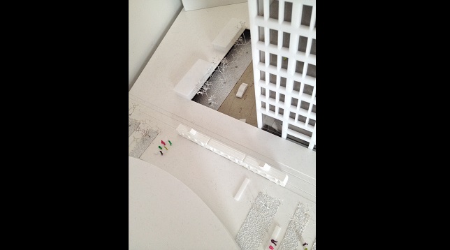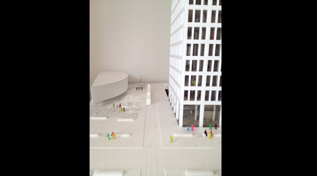 Clădirea este menită atât să susțină economic intervenția culturală cât și să devină un reper pentru oraș. Caracterul actual al zonei este destructurat și eterogen. Am adresat această problemă prin folosirea unui limbaj rigid dar coerent care are rolul de a organiza și structura zona. Clădirea este cât se poate de permeabilă având în vedere funcțiunile pe care le adăpostește.