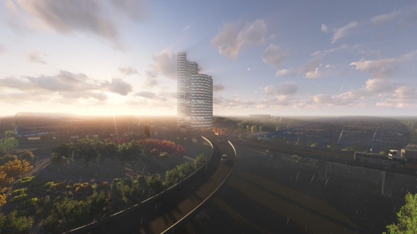 În cadrul ansamblului propus, clădirea turn are rolul de a marca în perspectiva orașului începutul/sfârșitul zonei urbane, tipologie a zgârienorilor utilizată cu precădere în Europa.
