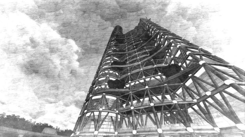 Clădirea este compusă din două corpuri de 20 și respectiv 31 de etaje, unite de pasarele cu vegetație. În plan, forma este eliptică - dictată de alveola în care este amplasat. Între cele două corpuri se creează un atrium, închis pe verticală din cinci în cinci etaje, astfel se creează un spațiu deschis de comunicare și interacțiune între funcțiunile propuse.