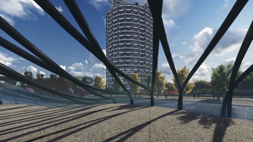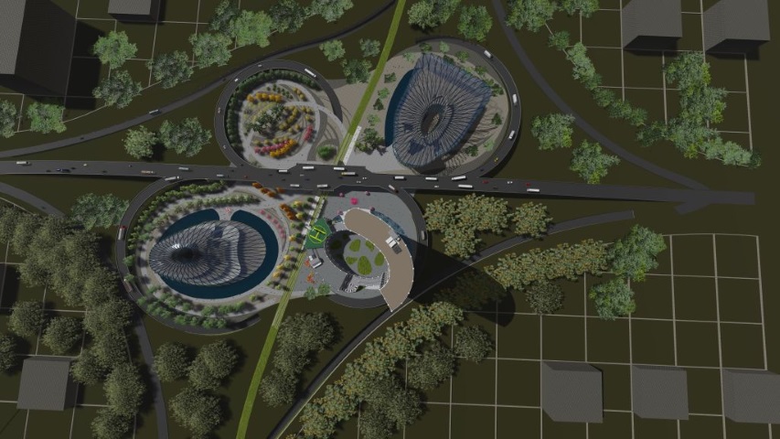 Conceptul a pornit de la reamenajarea nodului rutier într-o intersecție denivelată tip treflă, cele patru alveole devenind situl pentru clădirile propuse: centru comercial, centru de conferințe și turn multifuncțional.