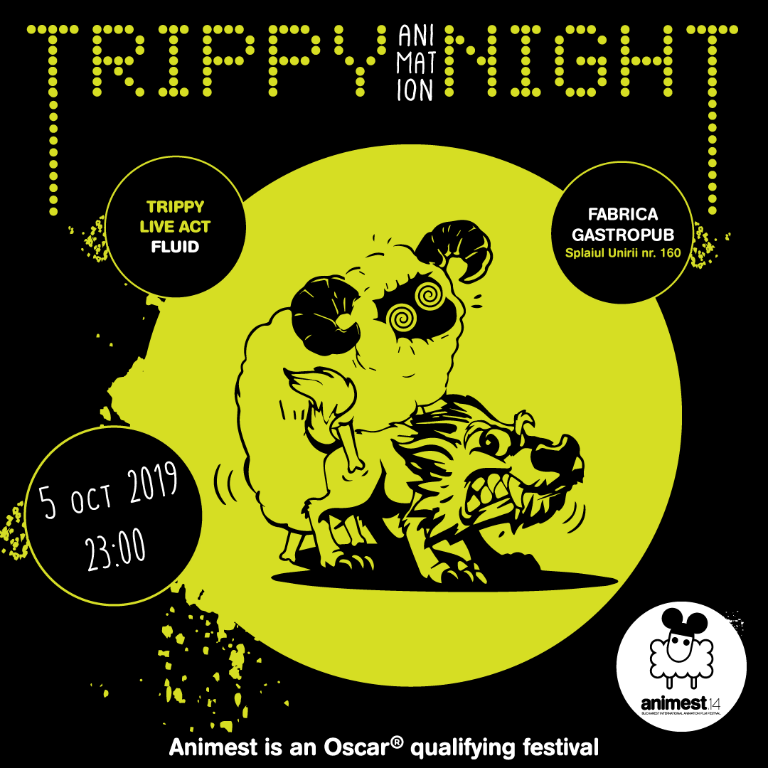 Sfârșitul de săptămână este marcat și de prima petrecere electrizantă din programul ediției. Una dintre cele mai mari atracții în materie de proiecții speciale, Trippy Animation Night va părăsi în acest an sala de cinema și se va transforma într-o noapte a filmelor psihedelice și avangardiste, dedicată spectatorilor care nu se feresc să iasă din zona de confort. Selecția curatoriată și la această ediție de artistul olandez Michael Helmerhorst va fi acompaniată live de Fluid, invitații speciali ai evenimentului programat sâmbătă, pe 5 octombrie, de la ora 23:00, la Fabrica Gastropub.