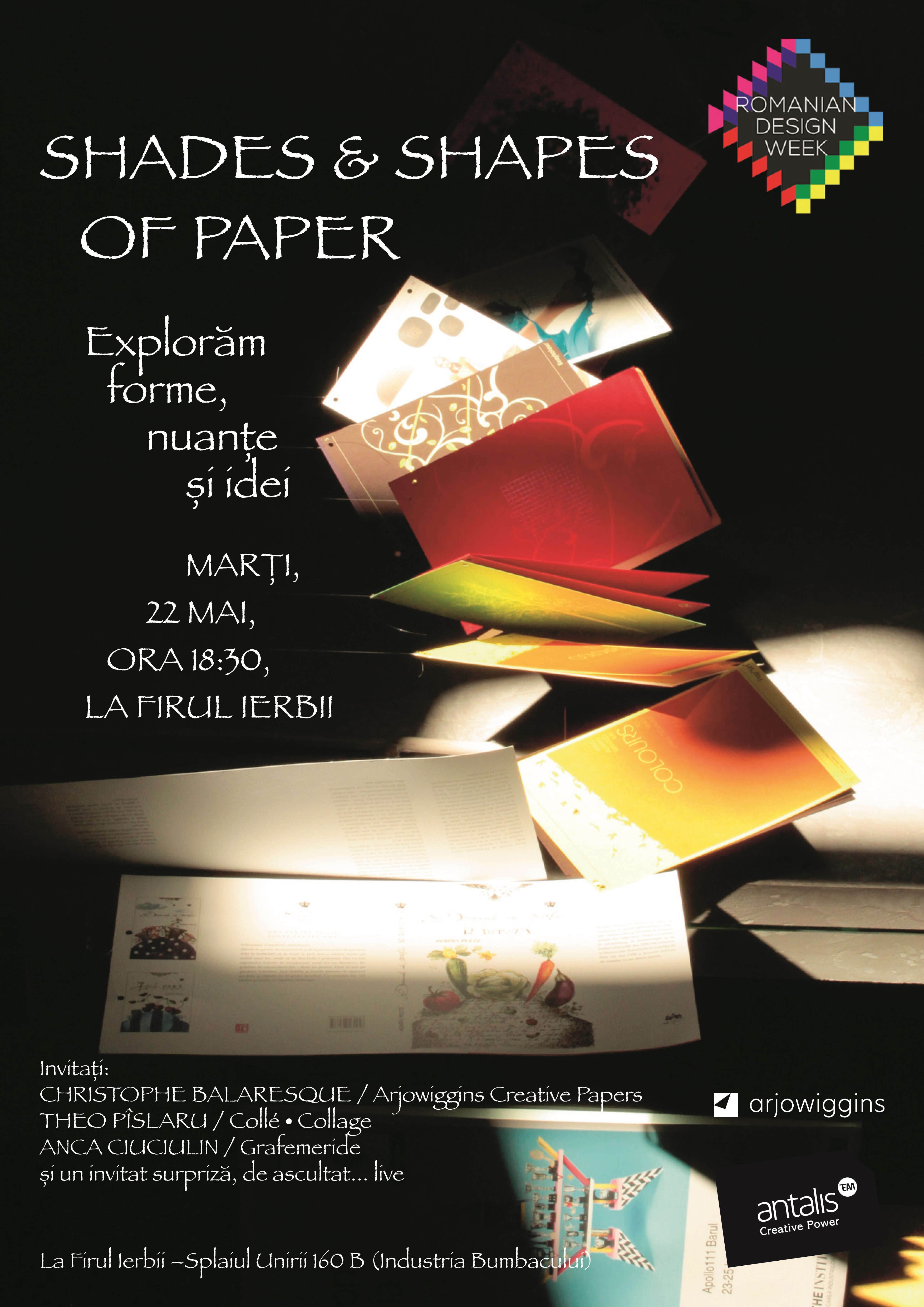 Evenimentul propune o călătorie inspirațională prin design grafic, packaging, print și design de produs. Ghizii sunt Theo Pîslaru (Collage Collage), Anca Ciuciulin (Grafemeride) și Christophe Balaresque (Arjowiggins Creative Paper).