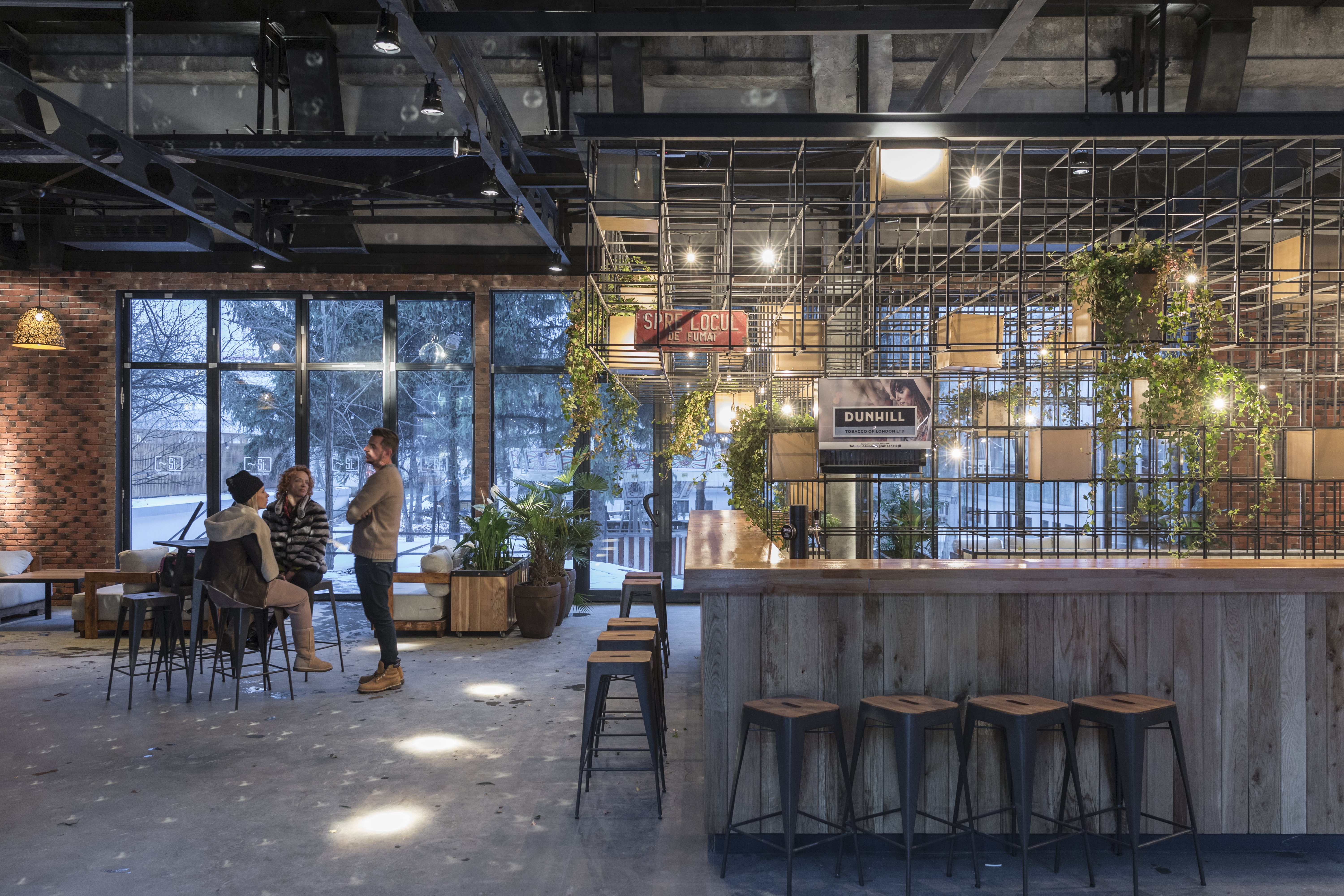C-Lounge is a contemporary social place in Bucharest, located in an old industrial hall of the former computer factory in Pipera. Given the layout of the building and the client’s brief, they chose an industrial theme, complying with the architectural vocabulary of the area.