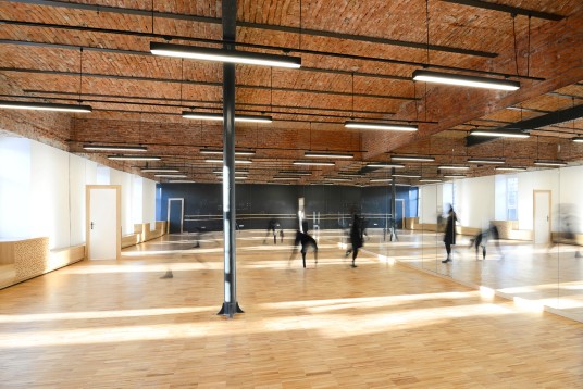 The project aims to uncover as much of the building’s essence as possible and to adapt it to its new program and its beneficiary’s needs. The team was responsible for the many interiors of of the school’s themed spaces. Out of these spaces, the Fashion studio and the Choreography studio are featured within RDW 2017.