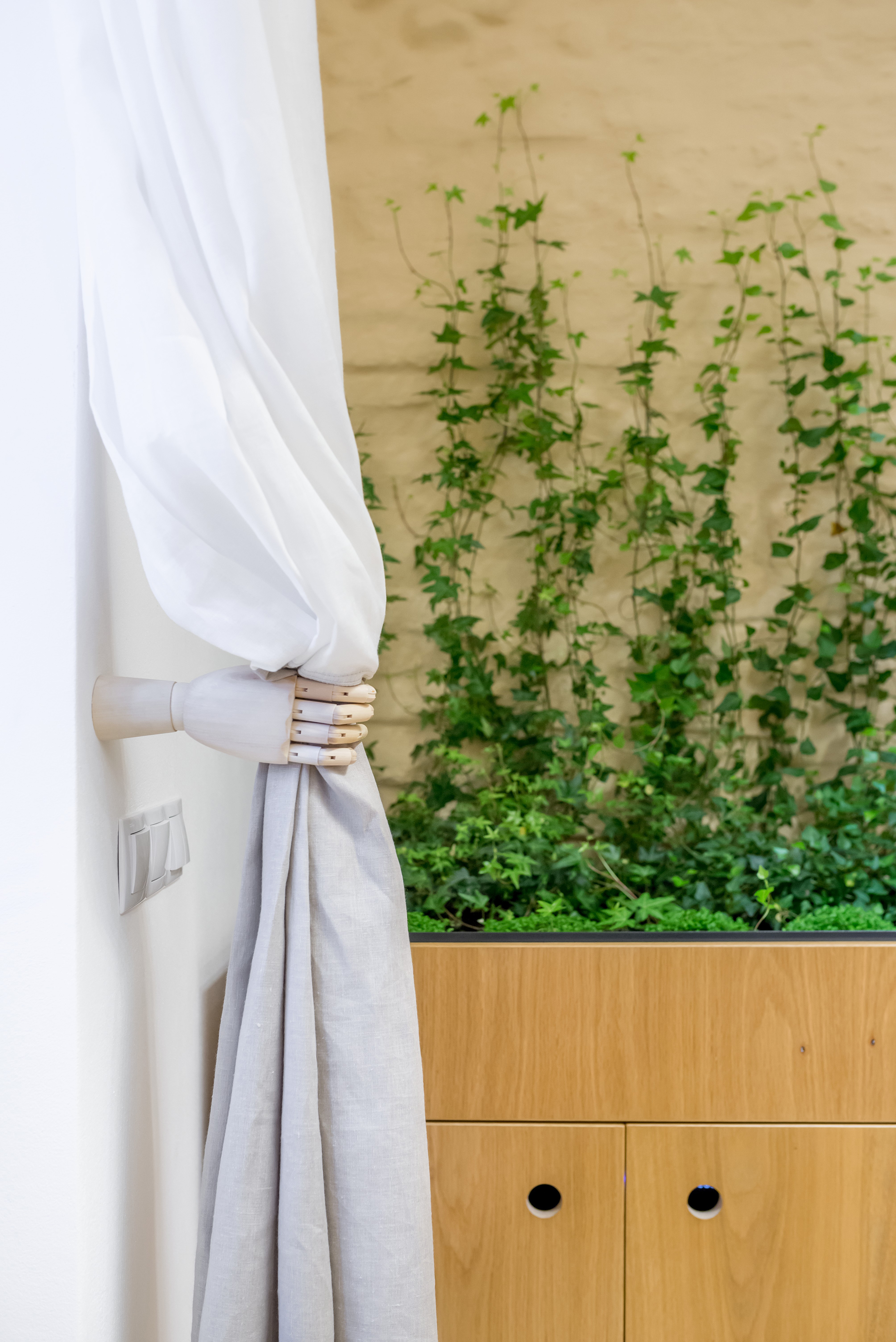 The forced perspective corridor that leads to and from the waiting area gives the illusion that the spaces are twice as closer from the entrance and twice as farther from the exit. This Po-Mo type of irony is continued in the small toilet which has its walls covered in sumptuous Carrara marble.