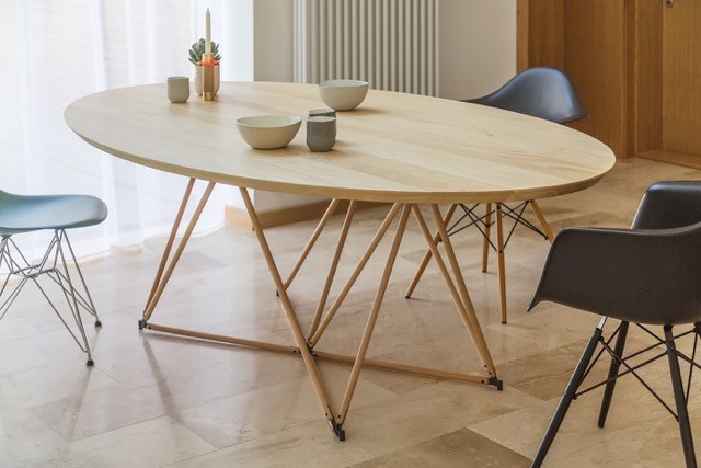 PolyTable is an object developed within and for our office but easily transcends its boundaries by becoming both the center of one’s dining room or conference room. The table top rests on a polygonal node structure which gives the table lightness, elegance and flexibility.