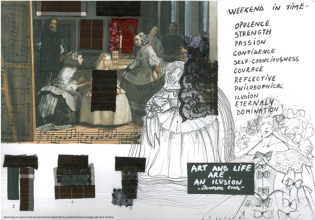 “Weekend in Time” reprezintă comemorarea curentului artistic Baroc, îmbinând decorul de teatru regăsit în arhitectură cu operele marilor artiști plastici din secolele al XVII-lea și secolul al XVIII-lea. Sursele principale de inspirație pentru această colecție sunt picturile lui Peter Paul Rubens și Diego Velázquez, în mod special lucrarea “Las Meninas”, dar și contrastele dintre formele curbe și rigiditatea materialelor folosite pentru realizarea costumelor, dar și corsetele ce alungeau și subțiau silueta femeilor.