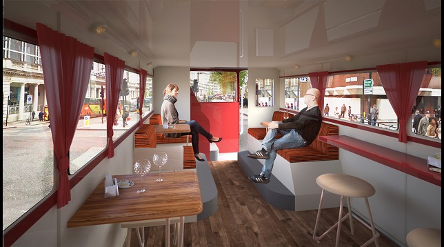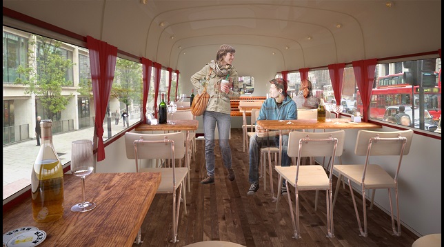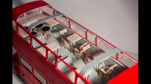 Proiectul ales asociază două tradiții din Marea Britanie și anume pub-ul englezesc și autobuzul roșu supraetajat tipic londonez. Routemaster este unul dintre cele mai reprezentative și frumoase vehicule din lume. Una din amenajările propuse este alcătuită din canapelele existente cu o structură metalică și tapițerie din material textil.