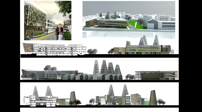 Propunerea înfățișează nu numai o școală, ci un întreg complex ce însumează și un centru multifuncțional, ateliere, cămine studențești, diferite zone recreative și creative, piațete, grădini, zone pentru workshop destinate publicului, spații comerciale și ateliere de meșteșugărit.