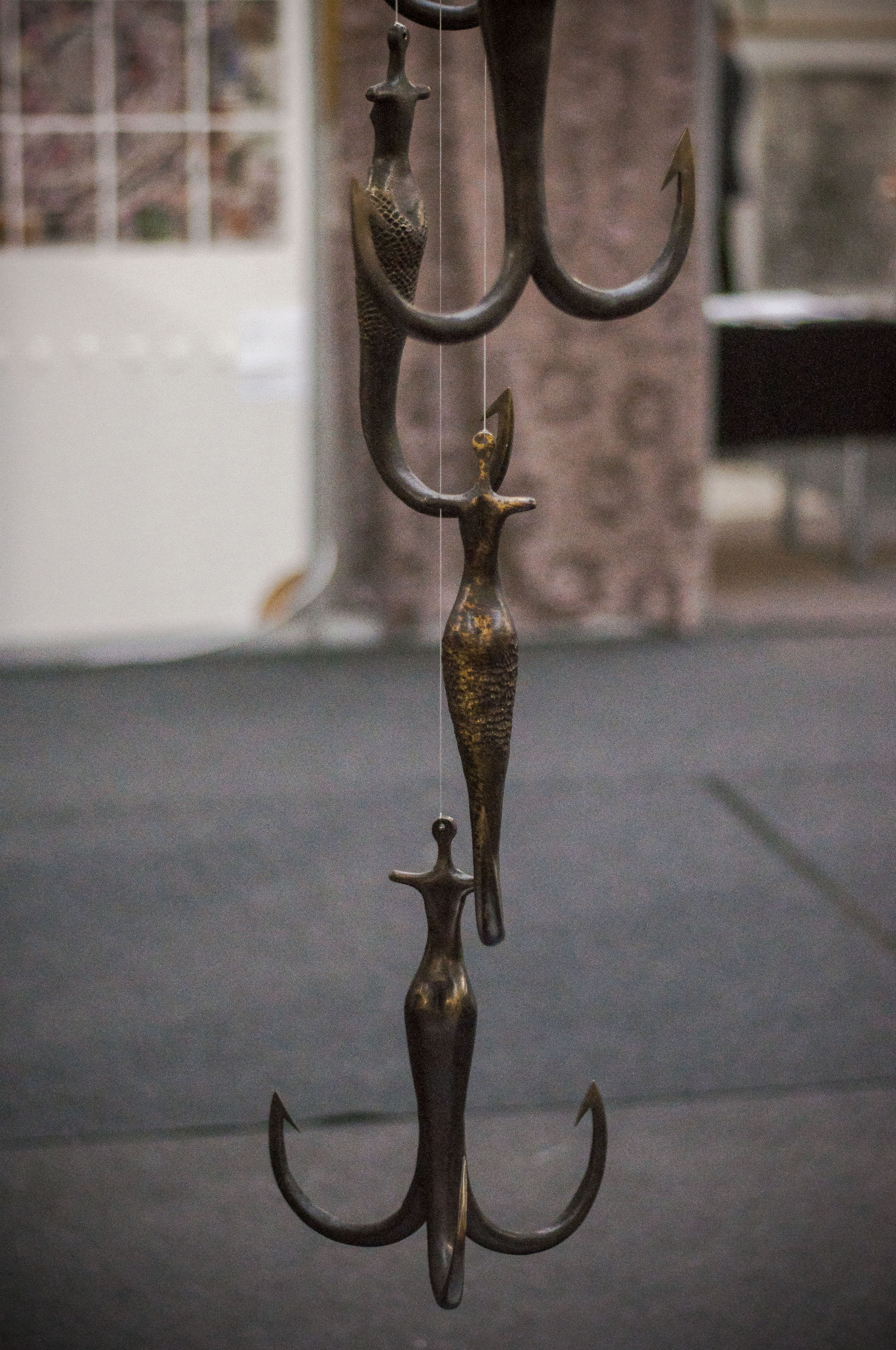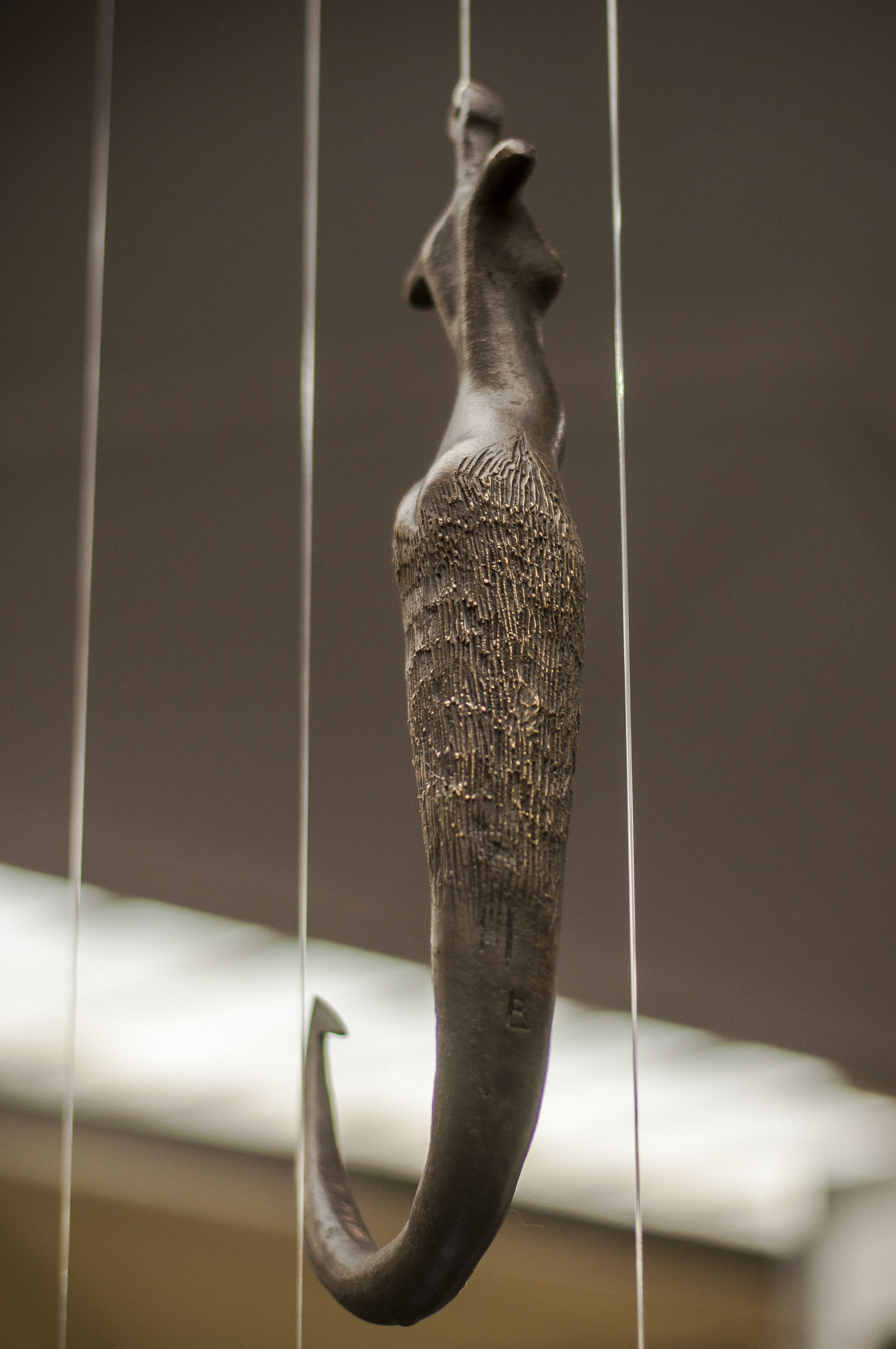 O entitate mitologică primitivă, Știma apelor, spirit acvatic din mitologia românească care apare ca o ființă de neînchipuit și este jumătate femeie și jumătate pește reușește să sublinieze probleme de natură socială de actualitate. Contrastul principal al lucrării este tocmai asocierea celor două elemente, sirena sau trupul feminin și cârligul caracterizat de forma masculină. Împreunarea celor doua elemente rezultă o formă feminină, cu însușiri masculine, un comentariu la poziția femeii contemporane.
